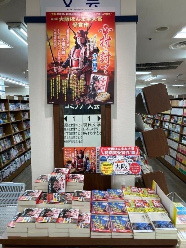 OsakaBookOneProjectとは、「書店・販売会社の垣根を越えて、大阪に関する1冊の本を、力を合わせてみんなで売る。そして、そこで得られた利益の一部で、子どもたちに本を寄贈する」という趣旨のもと、関西の書店員・販売会社社員の有志で集まり、立ち上げられたプロジェクトです。2013年に発足し、有志で選出した文庫本を関西一円の書店で販売。第4回からは「大阪ほんま本大賞」という新たな通称のもと、「大賞」に加えて「特別賞」も新設され、2作あわせて大阪・関西の書店店頭で大きく展開してきました。 第13回となる2025年は、大賞に今村翔吾さんの小説作品『幸村を討て』(中公文庫)、特別賞に『大阪人も驚く 大阪超マニアック案内』(KAWADE夢文庫、税込792円)が選ばれました。
