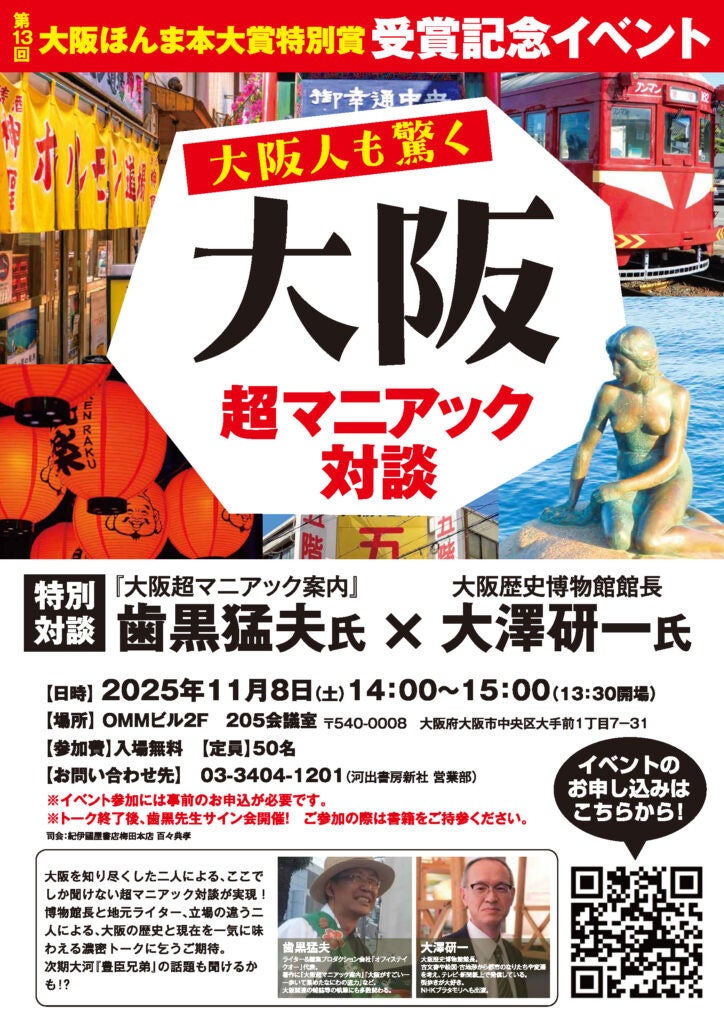 第13回 大阪ほんま本大賞特別賞受賞作品『大阪人も驚く 大阪超マニアック案内』(KAWADE夢文庫、税込792円)と受賞記念イベントに、ぜひご注目ください!