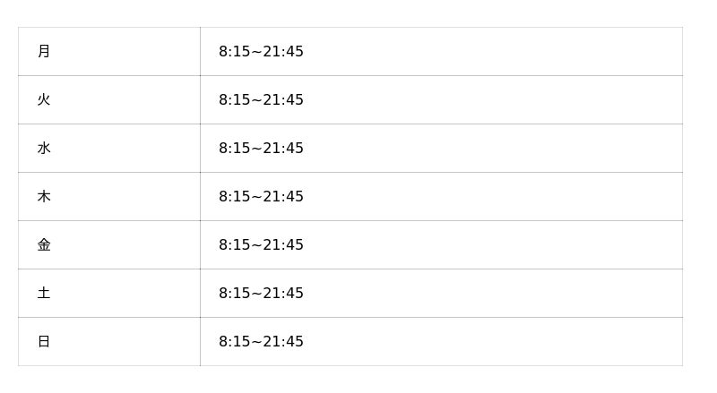 ※オープン時の営業時間となり、変更となっている可能性がございます。