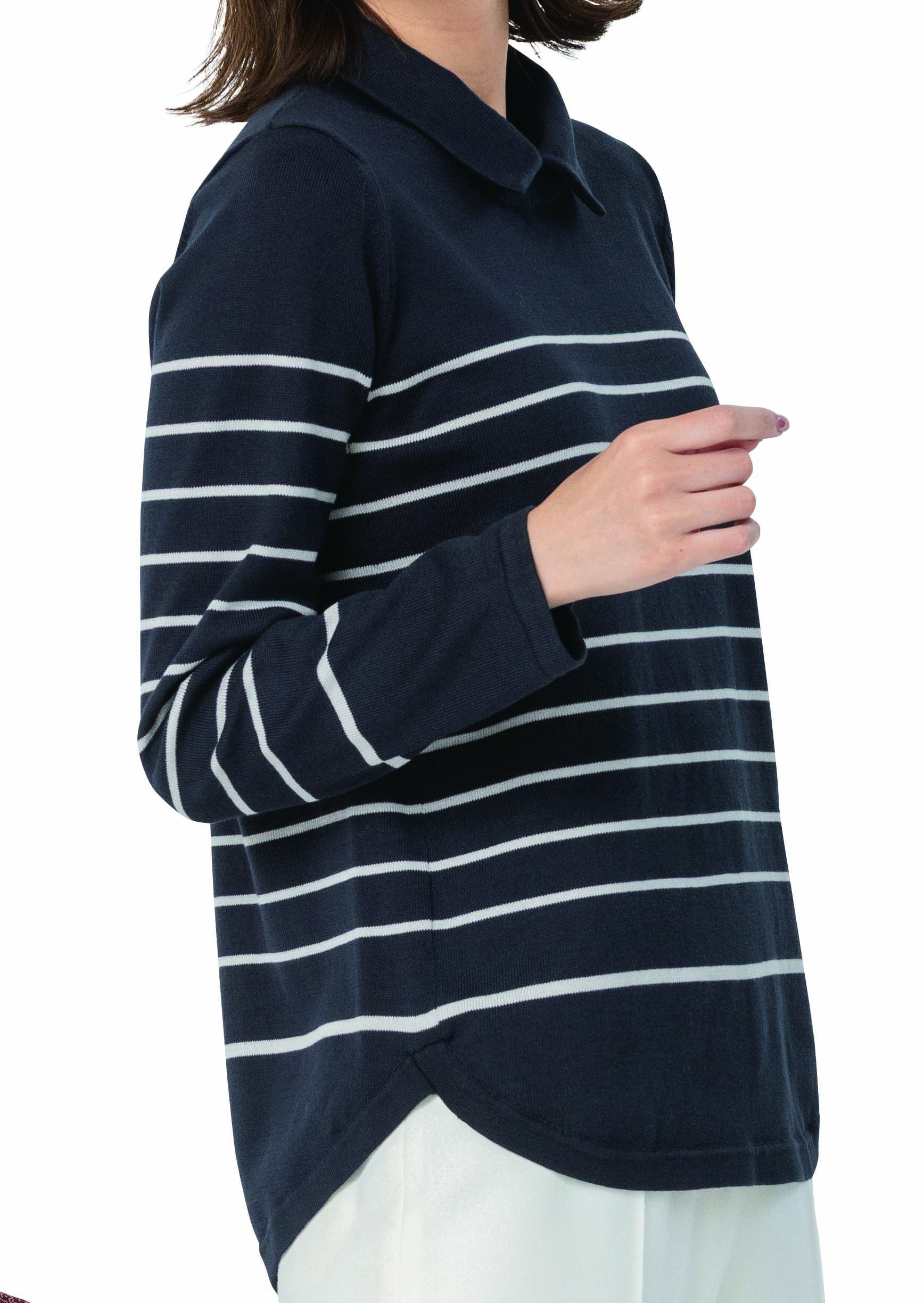 ギザ綿100%!きちんと感を備えた、襟付きニットプルオーバー。