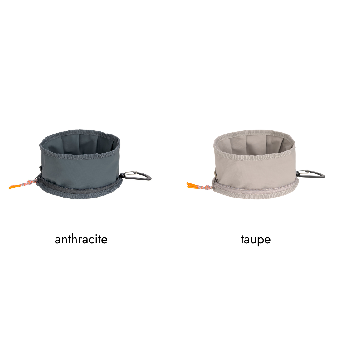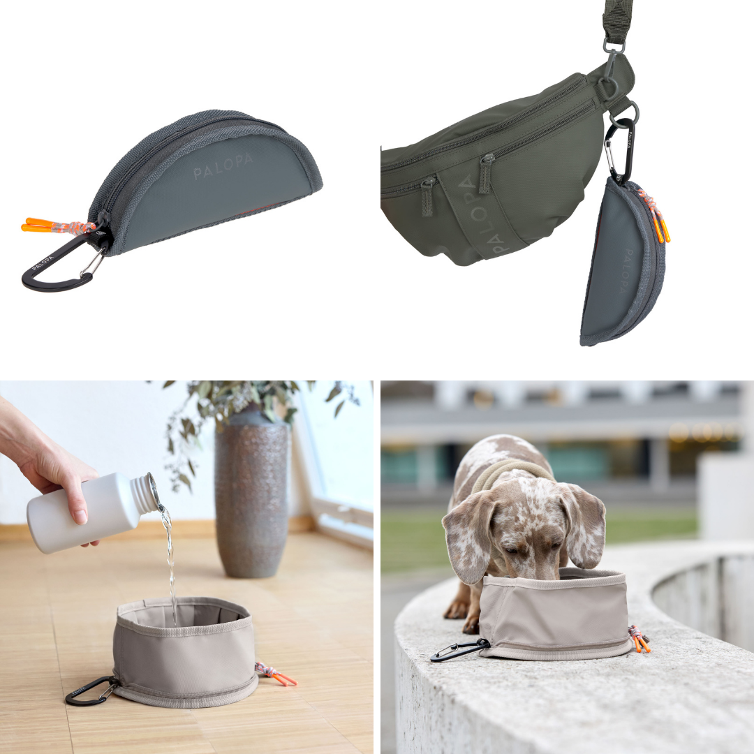 外出先での水分補給やごはんに便利な、軽量コンパクトな折りたたみ式ボウル。ジッパーで簡単に開閉でき、水やフードを入れたままでも安心して持ち運べます。カラビナ付きでバッグなどに装着可能。