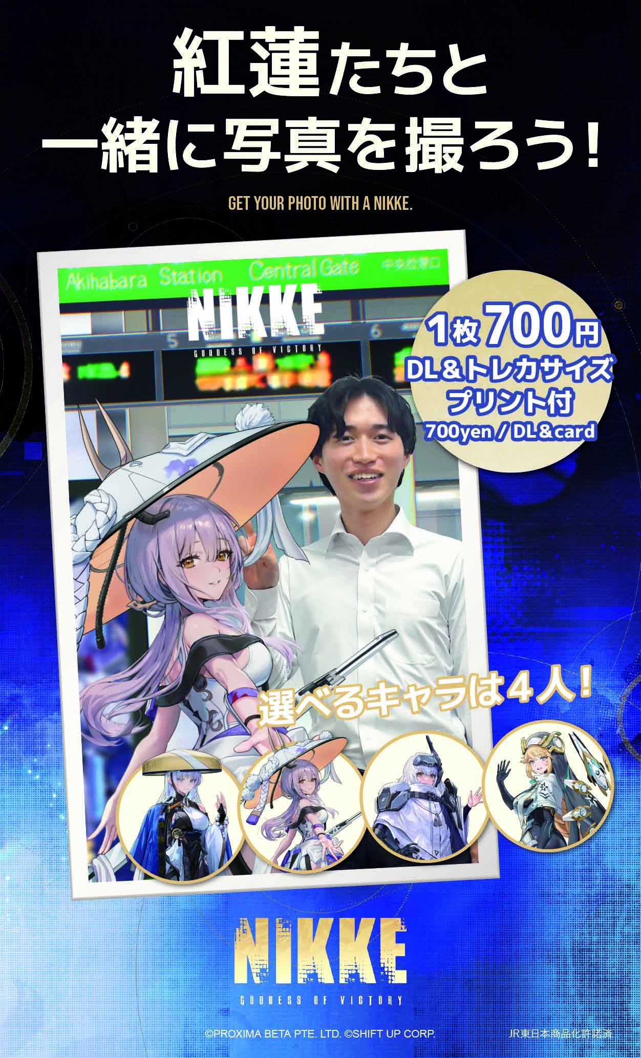 自分で選んだキャラクターやアーティストがその場にいるかのように登場し、臨場感のある撮影体験ができるTOPPANのサービス「WithShot(R)」を活用したデジタルフォトブースです。「勝利の女神:NIKKE」のキャラクターと一緒にいるような写真を撮ることができ、「TOPPA!!! BASE AKIBA」ならではの特別な体験を提供します。