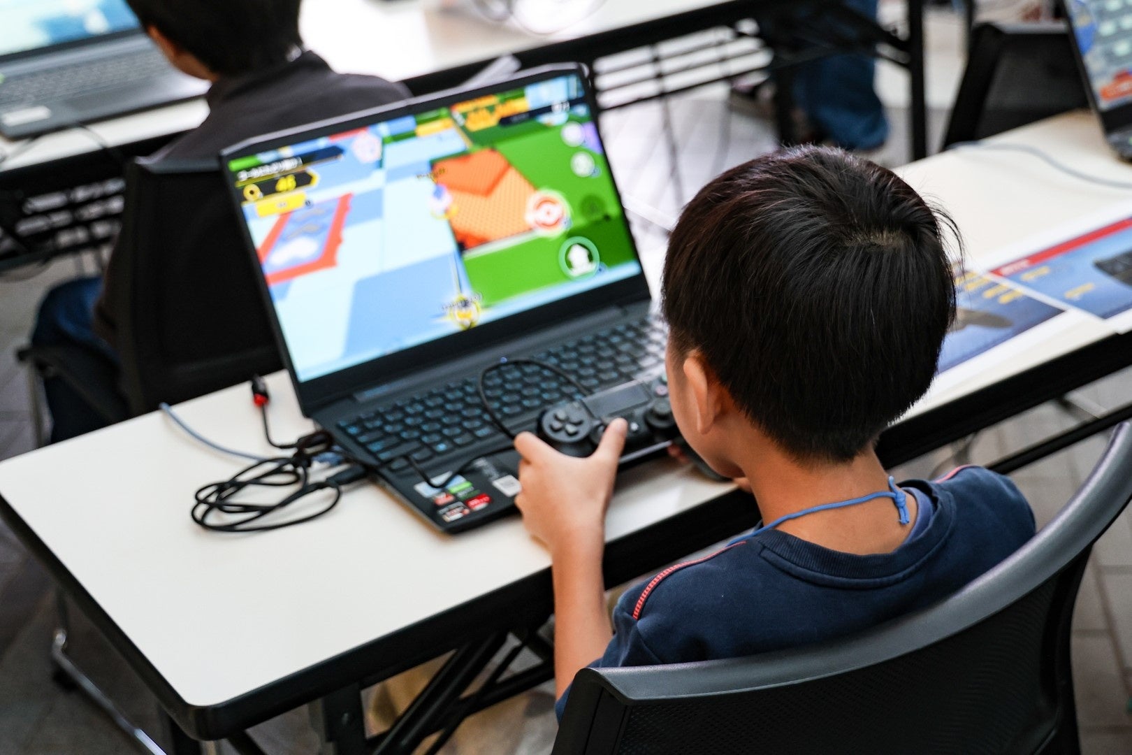 講座では、日本eスポーツ連合公認『ぷよぷよ』プロプレイヤーであり、元システムエンジニアのぴぽにあ選手が講師を務め、参加者たちはソースコードを書き写したり、ゲーム画面の背景設定を変更するコードを書いたりと、習熟度に合わせた形式でプログラミングを学びました。