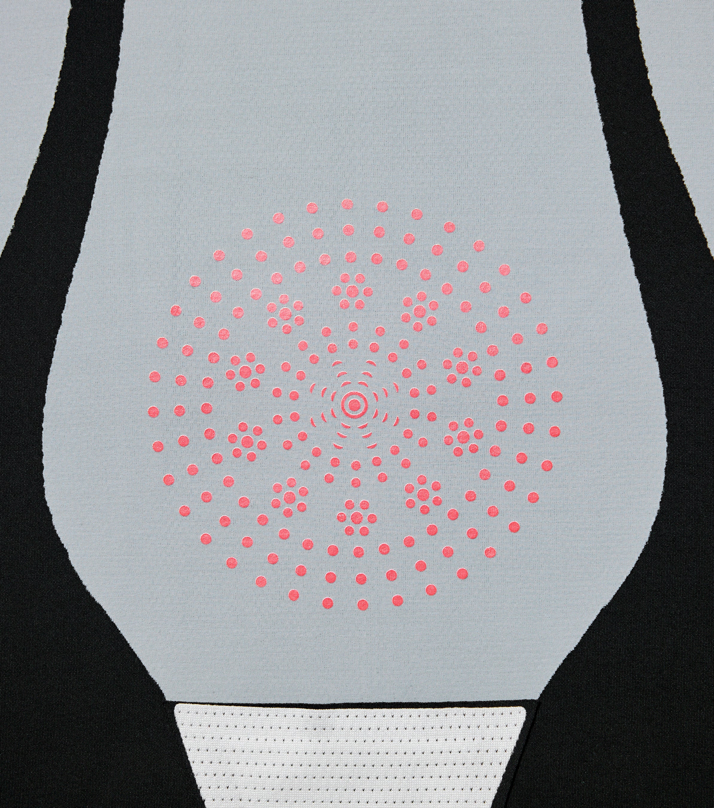 生地のお腹側には遠赤外線プリントを採用。体温を輻射(ふくしゃ)し、お腹を温めて血行促進。