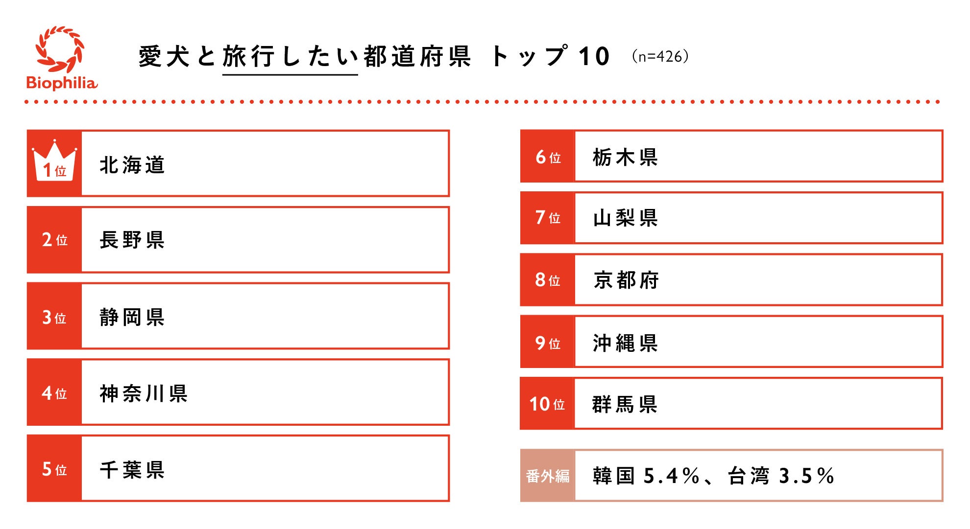 ■愛犬と旅行したい都道府県TOP10(n=426)