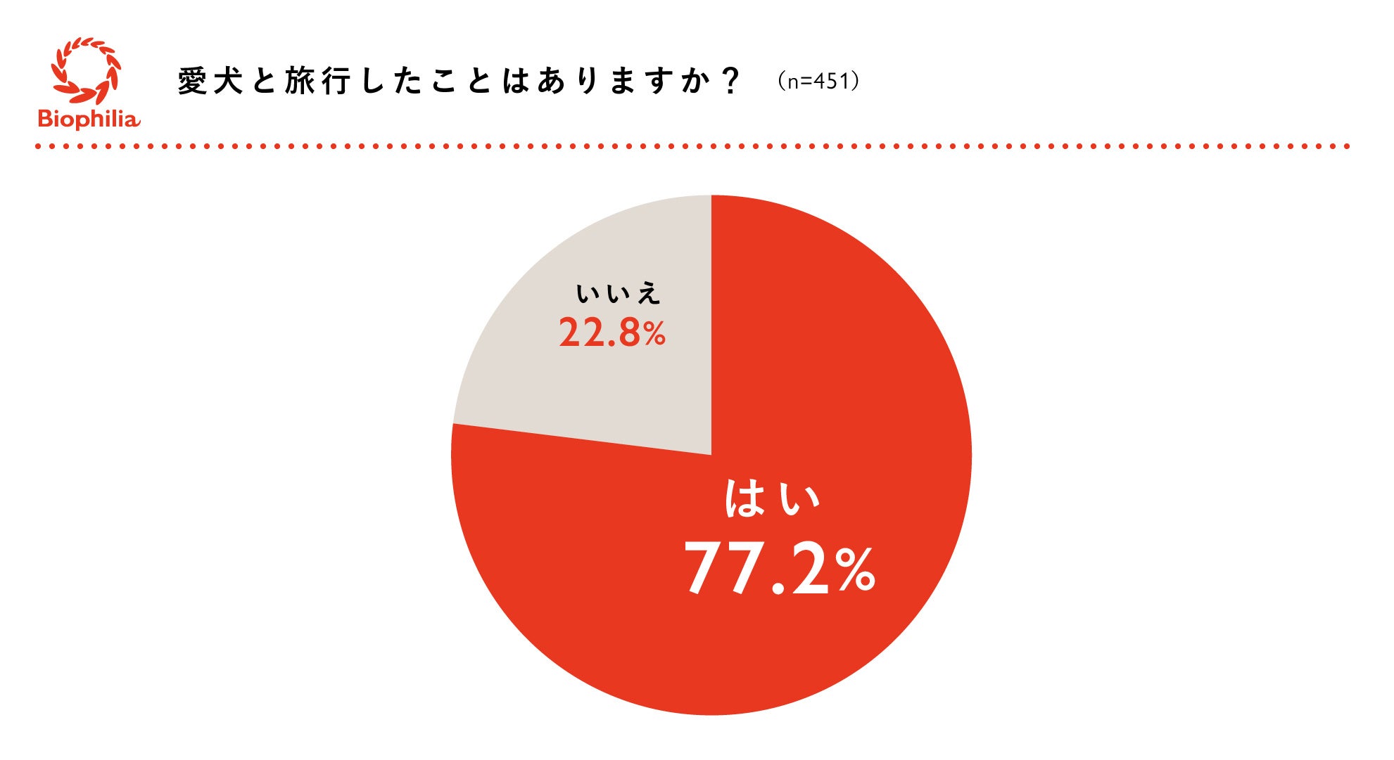 - 愛犬と旅行にいったことがある飼い主は77.2%