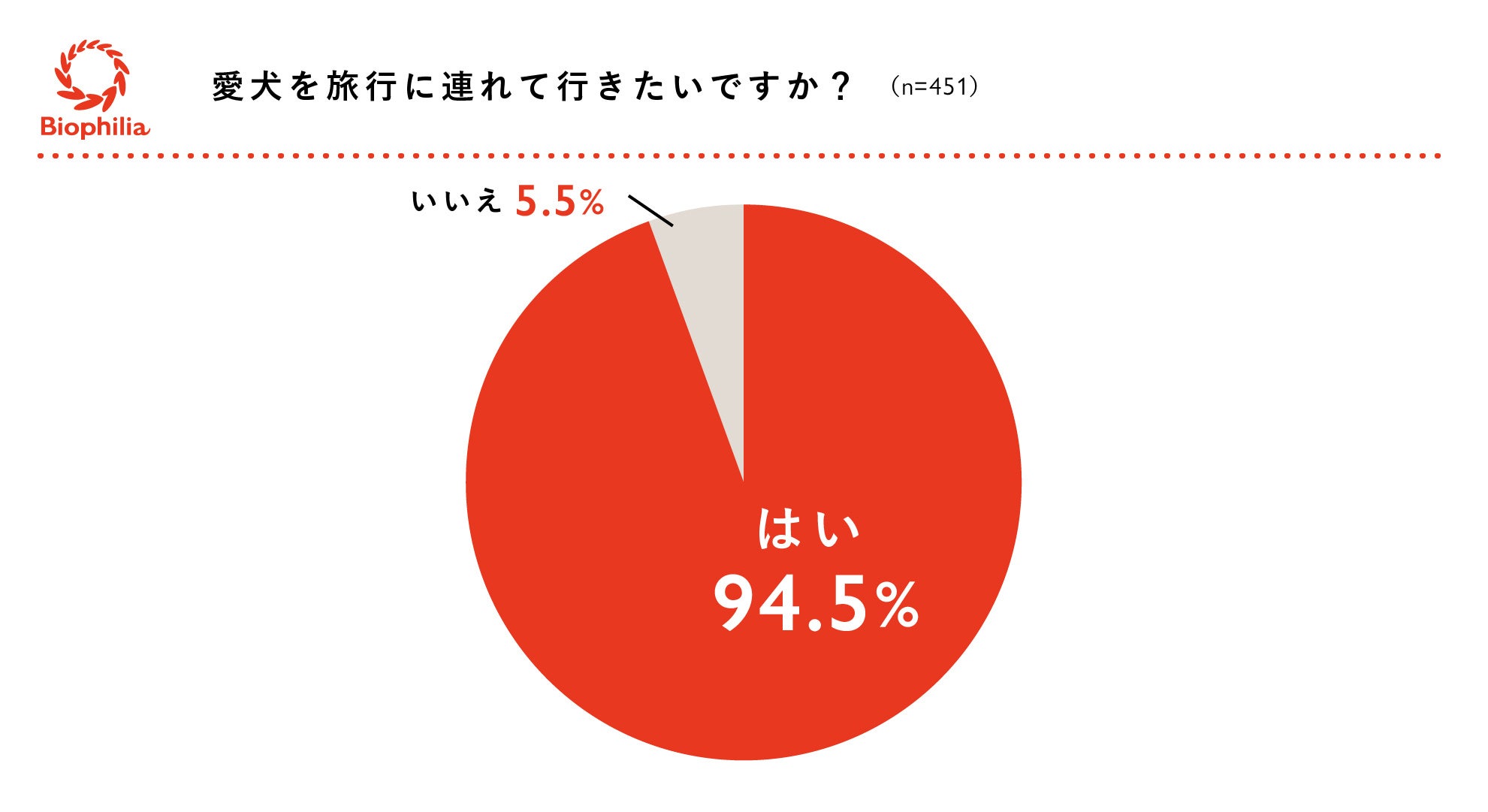 - 愛犬を旅行に連れて行きたい飼い主は2024年調査からわずかに減少したものの94.5%と依然として高い状態を維持
