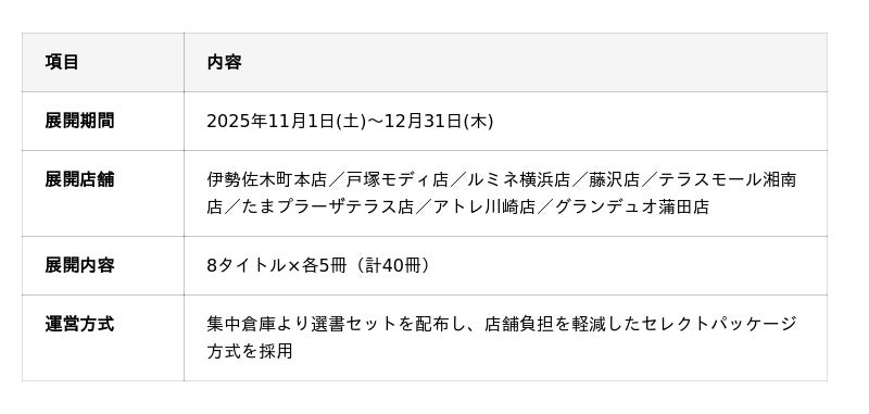 本企画は、当社が進める「書店の再定義」および「地域文化×個人創作支援」の一環として位置づけられるものであり、次世代に向けた“本のある場所”のあり方を再考する試みです。