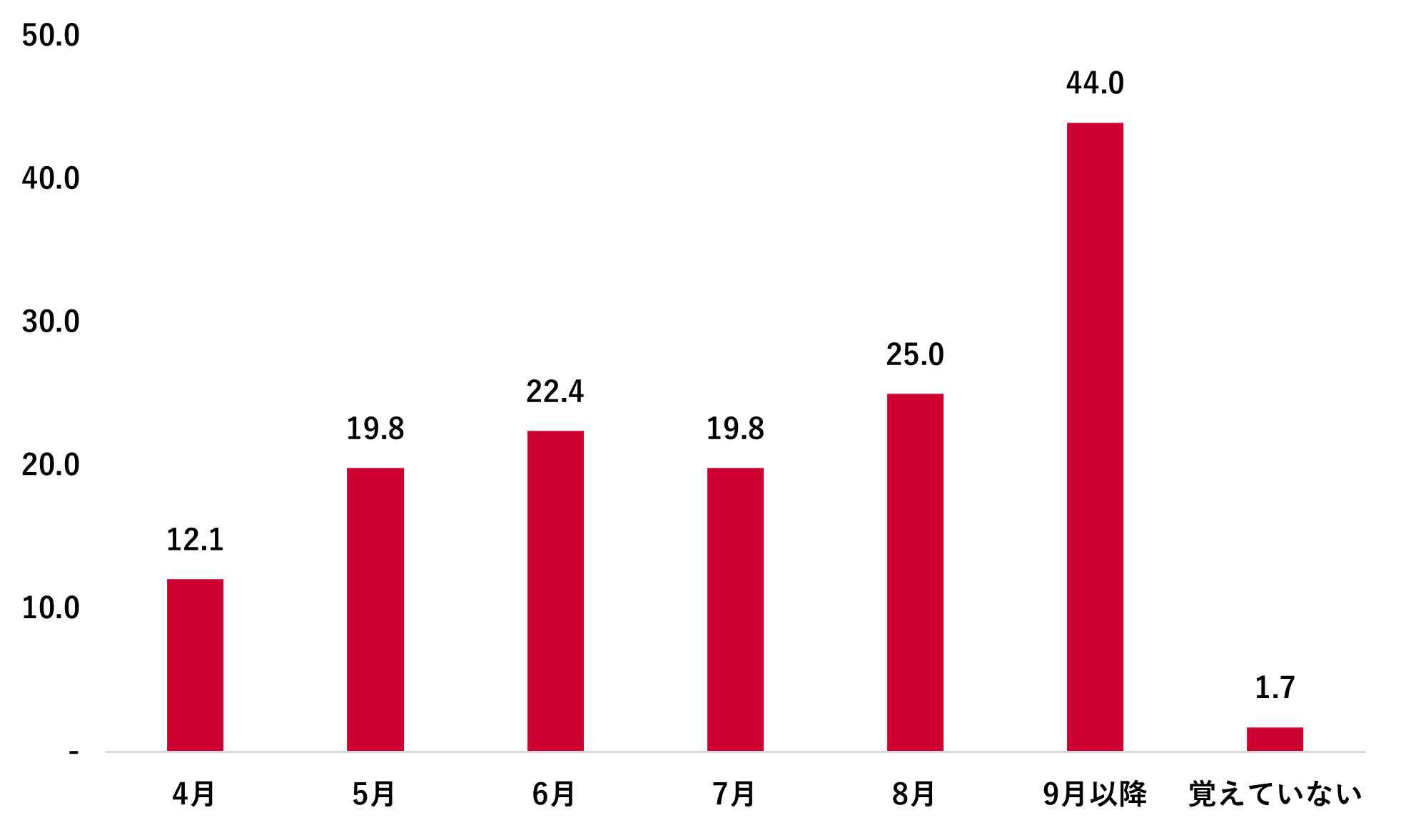 来場時期は「9月以降」が44.0%で最多だった。閉会(2025年10月13日)が近づいて、駆け込み来場の盛り上がりがあったことがうかがえる。