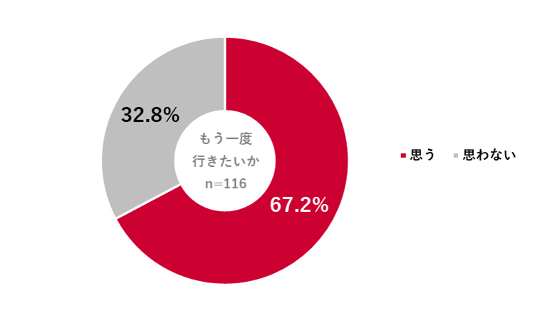 また、再訪意欲を伺ったところ、「もう一度行きたい」が67.2%となった。