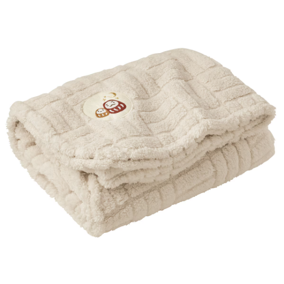 縁起の良い伝統的な和柄である「三崩し」柄とだるま刺繍がポイントのもこもこボアのブランケットです。空気をふくんで軽いのに、毛布のようなボリューム感でふんわり心地よい。スナップボタンを留めればケープ風にもなる優れものです。