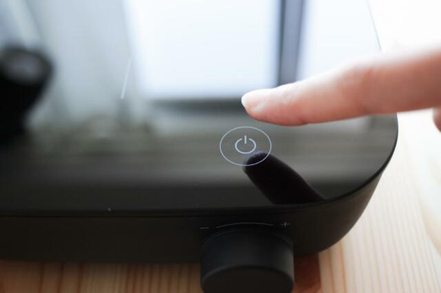 まずは本体右隅にある電源マークを「ON」と表示されるまで約2秒間タッチします。