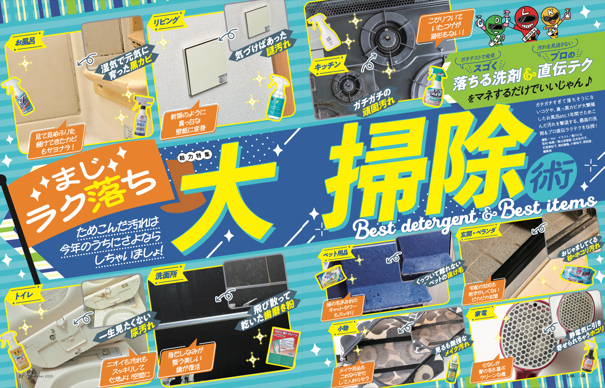ガチガチすぎて落ちそうにないコゲや、真っ黒カビが大繁殖したお風呂など、1年間でためこんだ汚れを撃退する、最高の洗剤&プロ直伝ラクテクを伝授!