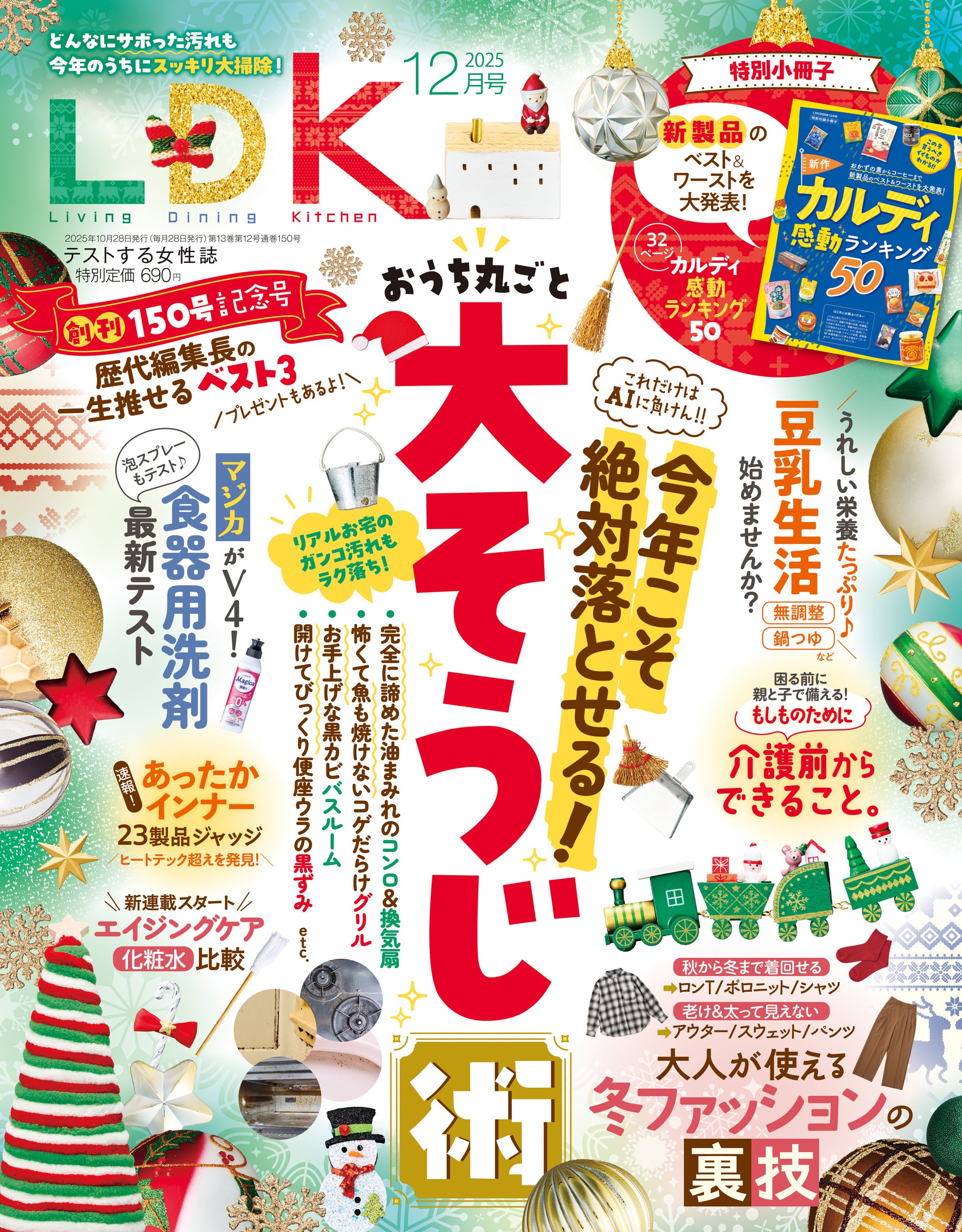 12月号は「まじラク落ち! 大掃除術」を総力特集! ためこんだ汚れは今年のうちにラクラクキレイを叶えましょう。ほかにも「LDK歴代編集長が見つけてよかったもの」や「冬ファッション裏技ガイド」、「豆乳生活のススメ」など、生活が楽しくなる情報が満載です。特別付録「新作カルディ感動ランキング50」も付いてきます。使う人目線の検証で見つけた本当にイイもので、心地よい暮らしを実現しましょう。