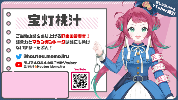 時計に表示され、自己紹介しているVTuberは、企業VTuberとして活躍中で数万人のフォロワーを持つVTuberもいれば、デビューしたばかりの駆け出し個人VTuberもいますが、みなさま平等に誰、もが1分間ずつ時刻とともに自己紹介スライドとして表示されるようにしております。