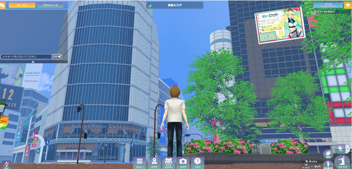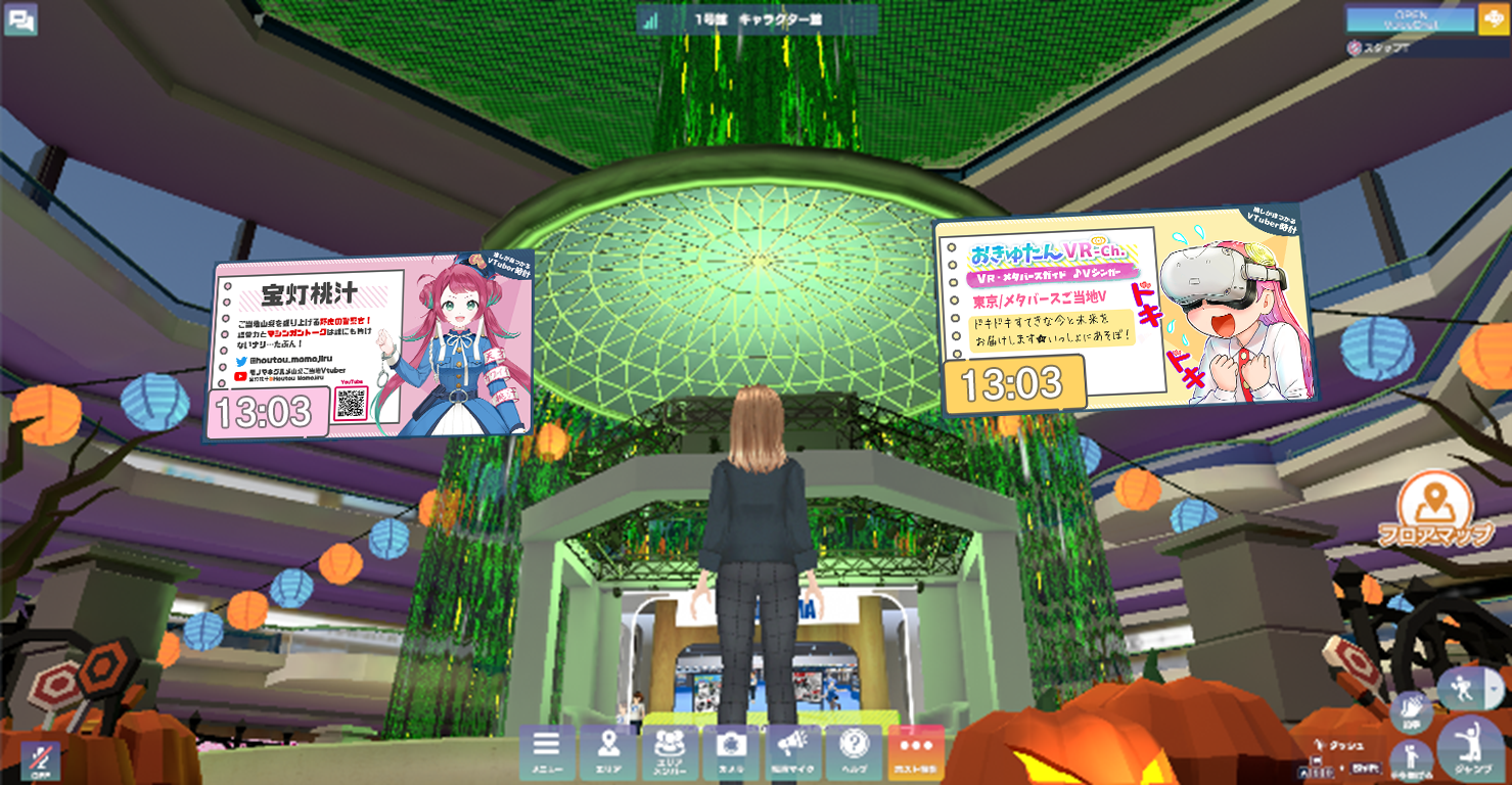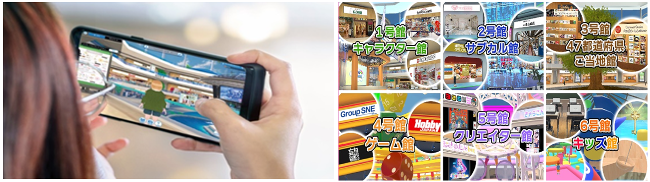 スマートフォンやパソコン、タブレットなどからアプリ無しでもログインし、アバターを操作することで、オンラインショッピングやライブイベントなどが楽しめるメタバースの商業施設です。現在6号館までの施設に250店舗以上のお店や、写真展会場、イベント会場、会議室などが展開されています。