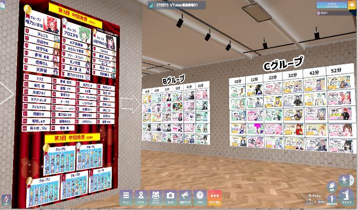 ですが、 最初の60名を設置した際に、推しているVTuberが表示される時間になると、モールに来館されて時計と写真を一緒に撮られるファンの方々がいらっしゃることに気づき、増やしていくなら1時間60人分ごとに追加していくことにして、登場する時間が変わってもある程度探しやすいような運用ルールにしています。