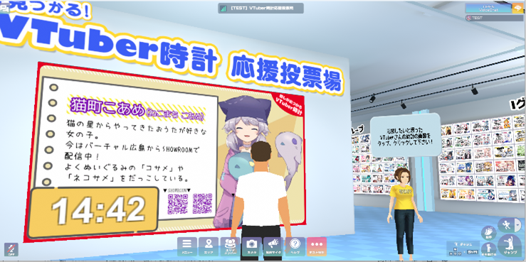 VTuber時計に参加しているVTuberが何時何分に、どこに表示されるかをわかりやすく一覧をみられる応援投票会場を2025年11月1日(土)~2026年3月31日(火)までモール内に新設し、1,080名のVTuber時計の表示スライドを見てもらえるようにします。「推しが見つかる!」「推しを応援したくなる!」のコンセプトを表現し、一同に並んだVTuber時計の各VTuberの画像をクリック、タップすることが応援投票になり、1日1人のVTuberにつき1票を投票してもらいます。1日1人に1票の投票なので、推しが複数人いる方や、新たな推しを探して複数人に投票いただくことも推奨します。