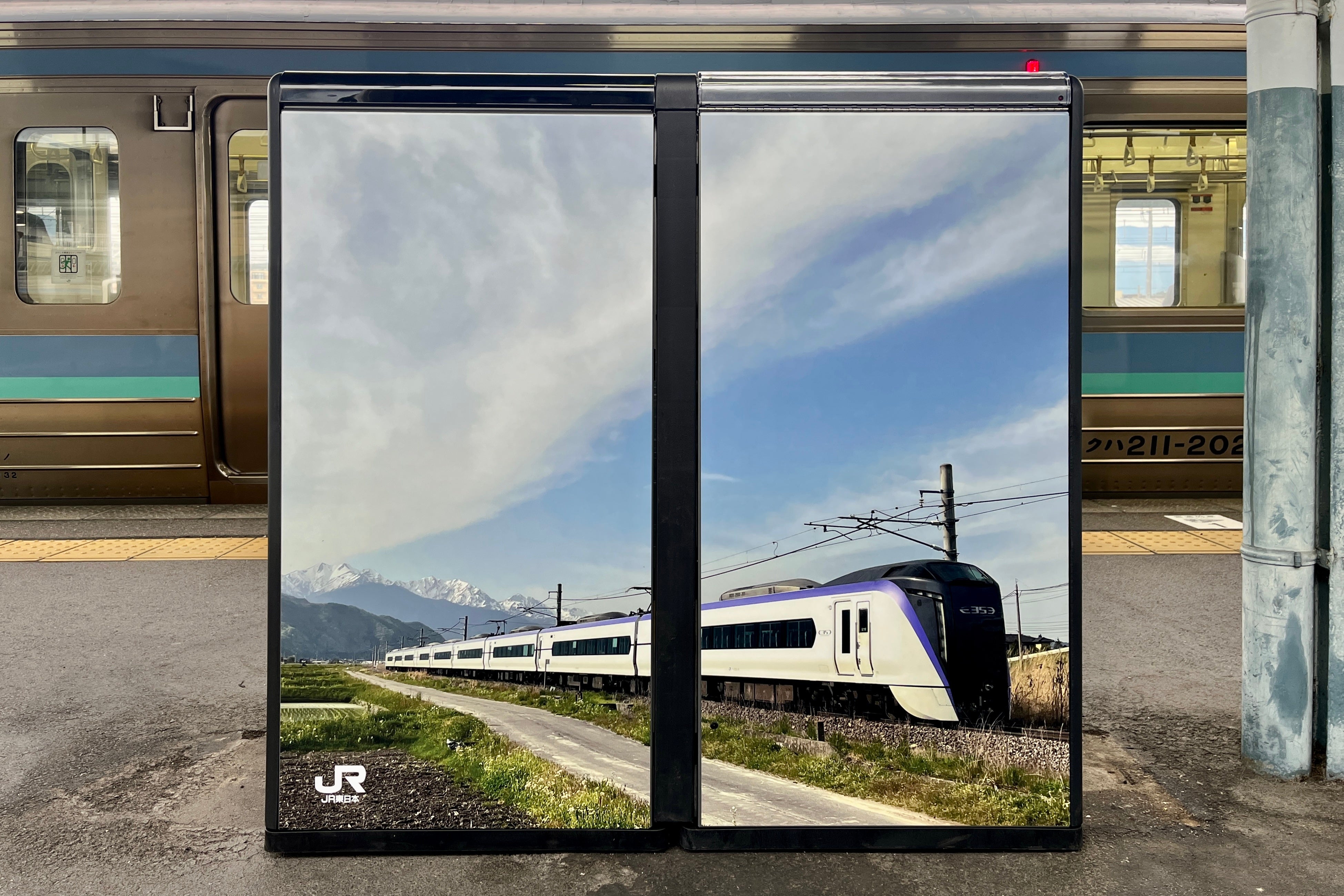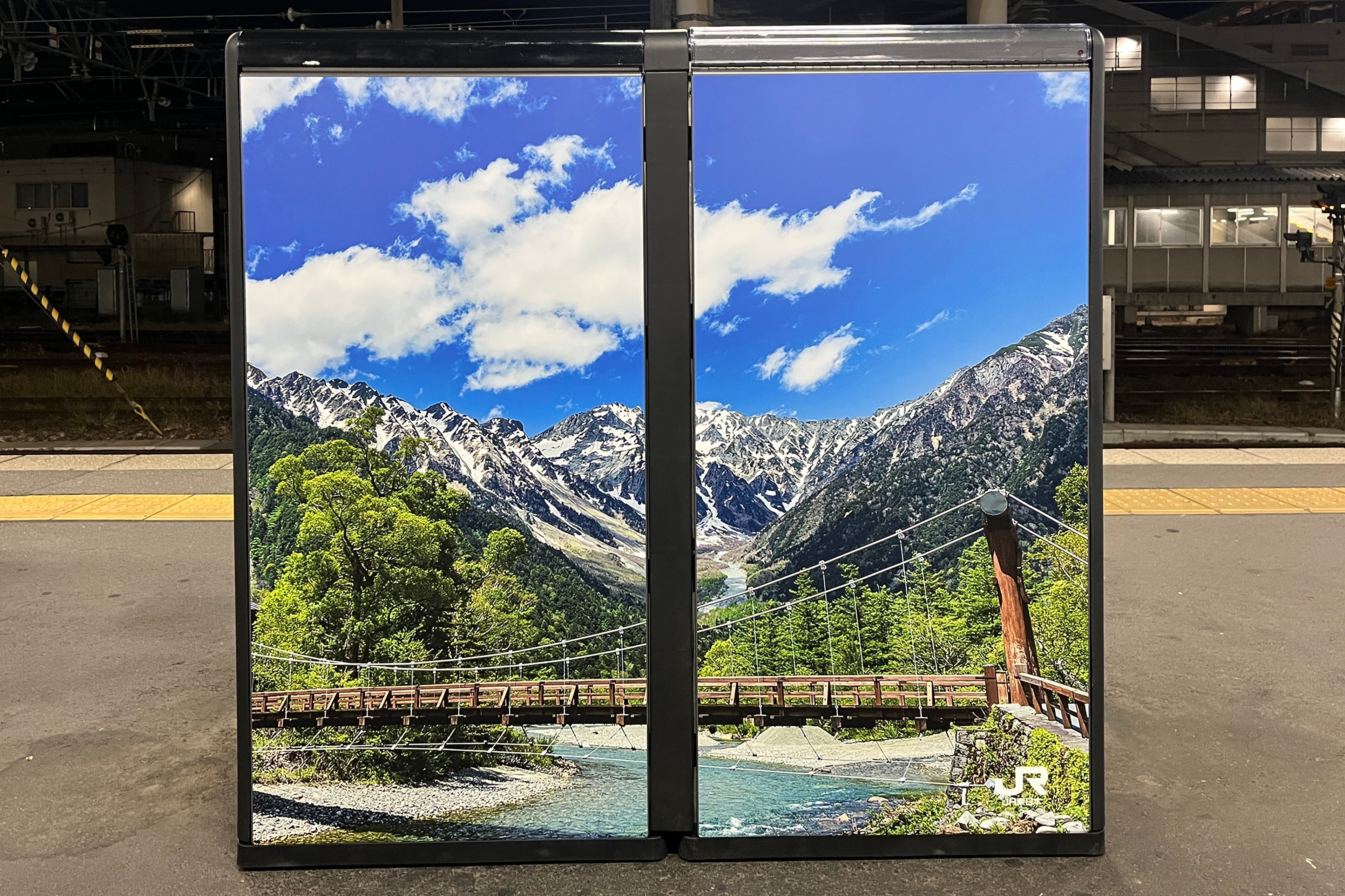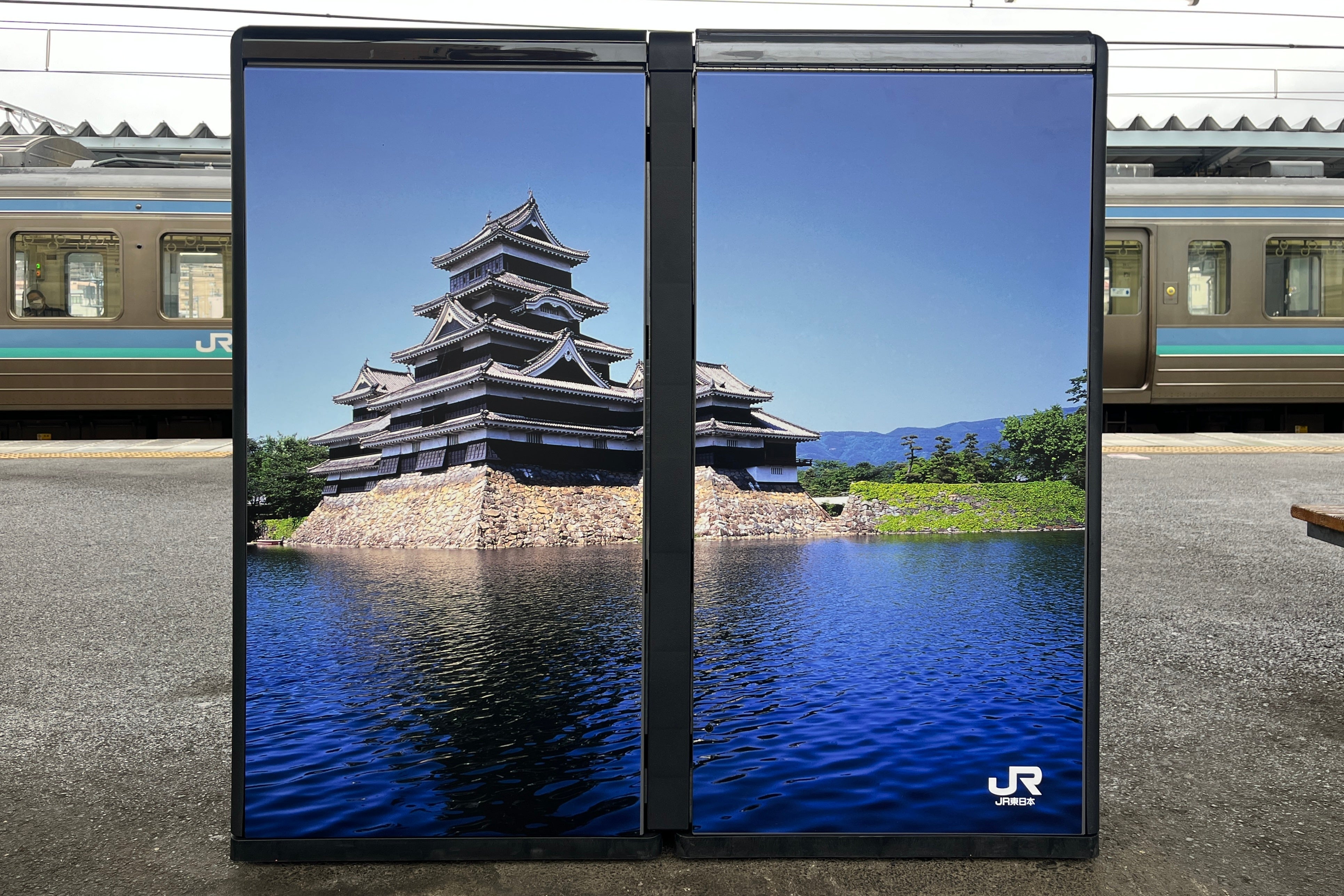 正面と側面にJR東日本のコーポレートカラーである「緑×白」を採用し、また背面には特急あずさや松本城、上高地など、松本を象徴する風景写真をあしらいました。駅を訪れる人々に“信州らしさ”を感じていただけるビジュアルを通じて、ゴミ箱から〈地域と鉄道が連携したサステナブルなまちづくり〉を発信します。