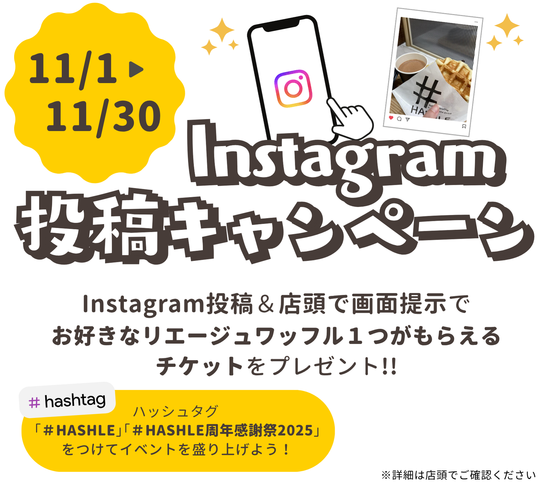 「#HASHLE周年感謝祭2025」Instagram企画【期間】11月1日(土)~11月30日(日)