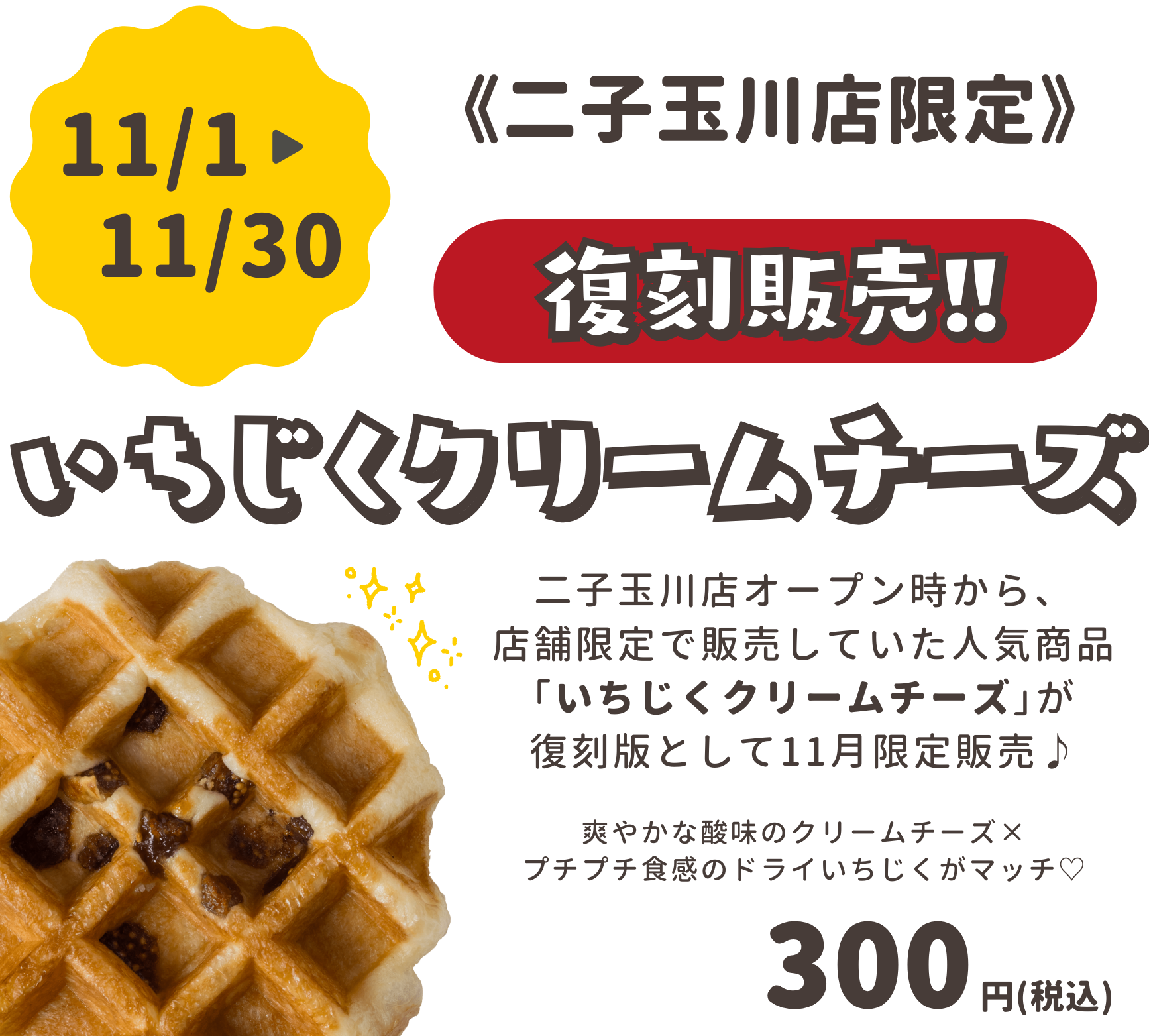 【内容】店舗限定商品として販売していたリエージュワッフル「いちじくクリームチーズ」を復刻販売