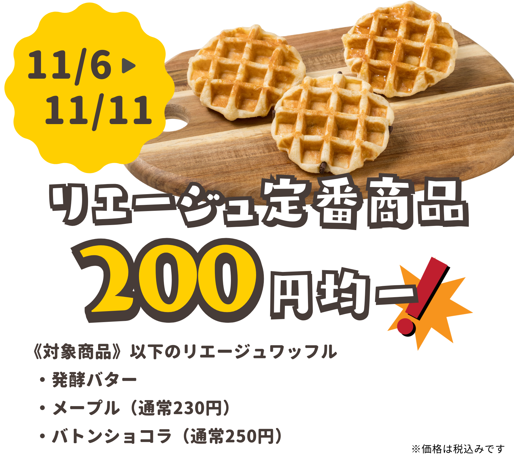 リエージュ定番商品200円均一【期間】11月6日(木)~11日(火)