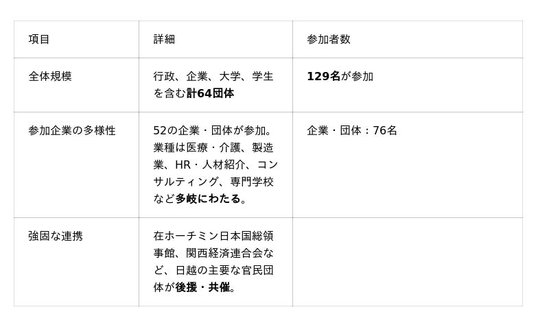 この成功実績に基づき、ダナン開催では中部地域へのネットワークを拡大し、さらなる投資促進と採用支援を目指します。
