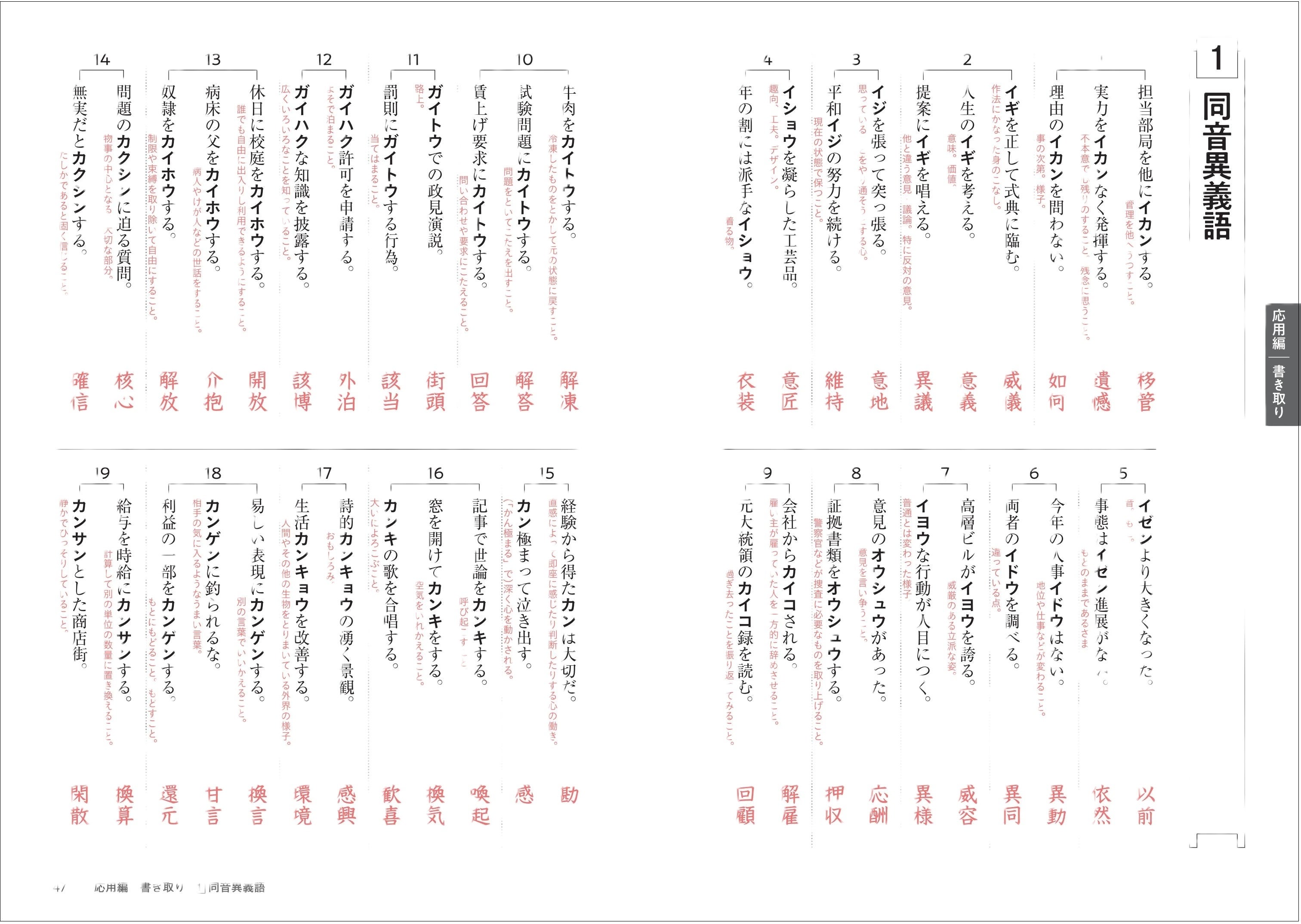 (『大学入試 でる順 漢字書き取り・読み方2900 新装六訂版』紙面イメージ)
