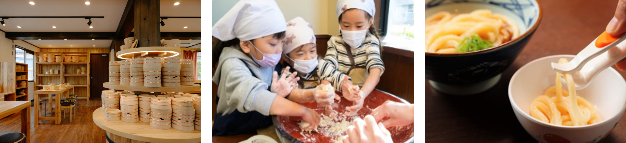 また、こども達に食の楽しさや尊さを伝える「食育活動」にも積極的に取り組んでいます。「こどもうどん教室」では、うどんを粉と塩と水を手で混ぜるところから体験でき、キッチンカーを用いての出張教室も日本中で実施をしています。そして、環境面ではプラスチック使用量の削減にも取り組んでいます。店内では繰り返し使用可能な食器の活用や、テイクアウト商品のカトラリーやビニール袋へのバイオプラスチック配合など、石油由来素材の使用削減を進めています。