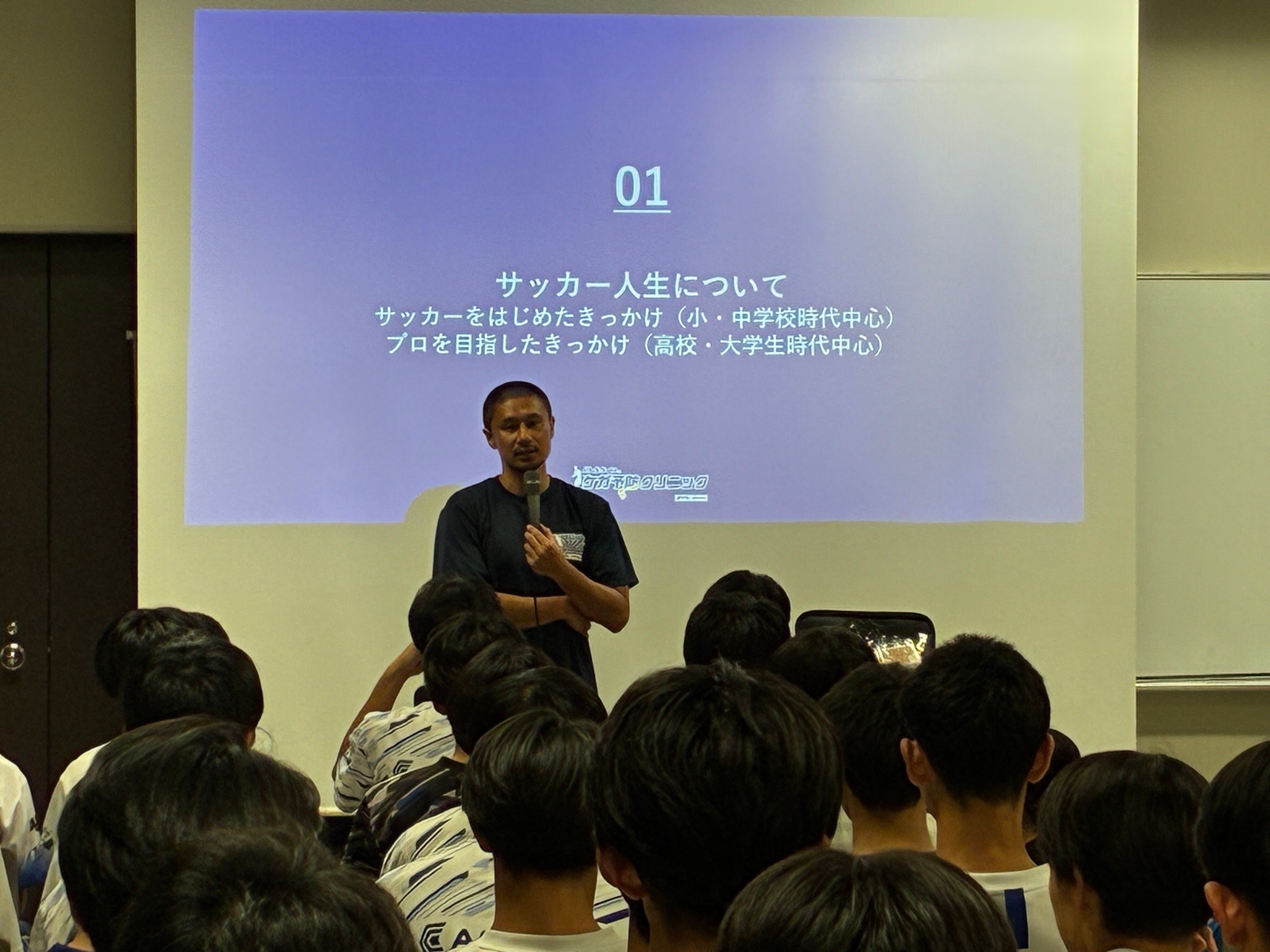 第1回は東京都の青山学院高等部に訪問し、サッカー部60名が参加しました。元プロサッカー選手の坪井慶介さんを講師に迎え、3部構成で開催しました。
