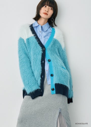 プレイフルなカラーパレットと異素材MIXが魅力のカーディガン。さっと羽織るだけで、こなれたモード感をまとえる一枚。日常をアクティブに彩って。