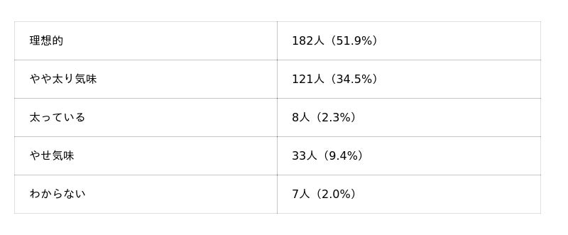 体型に対して約5割が「理想的」と回答、一方で“やや太り気味”と感じる飼い主も3人に1人以上
