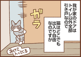 家の中の扉がほとんど引き戸だという話は、この連載の中でもちょくちょくしてるのですが、もともと外出時などに猫の閉じ込め防止のためにそうしています!…が…それが仇となり…(笑)