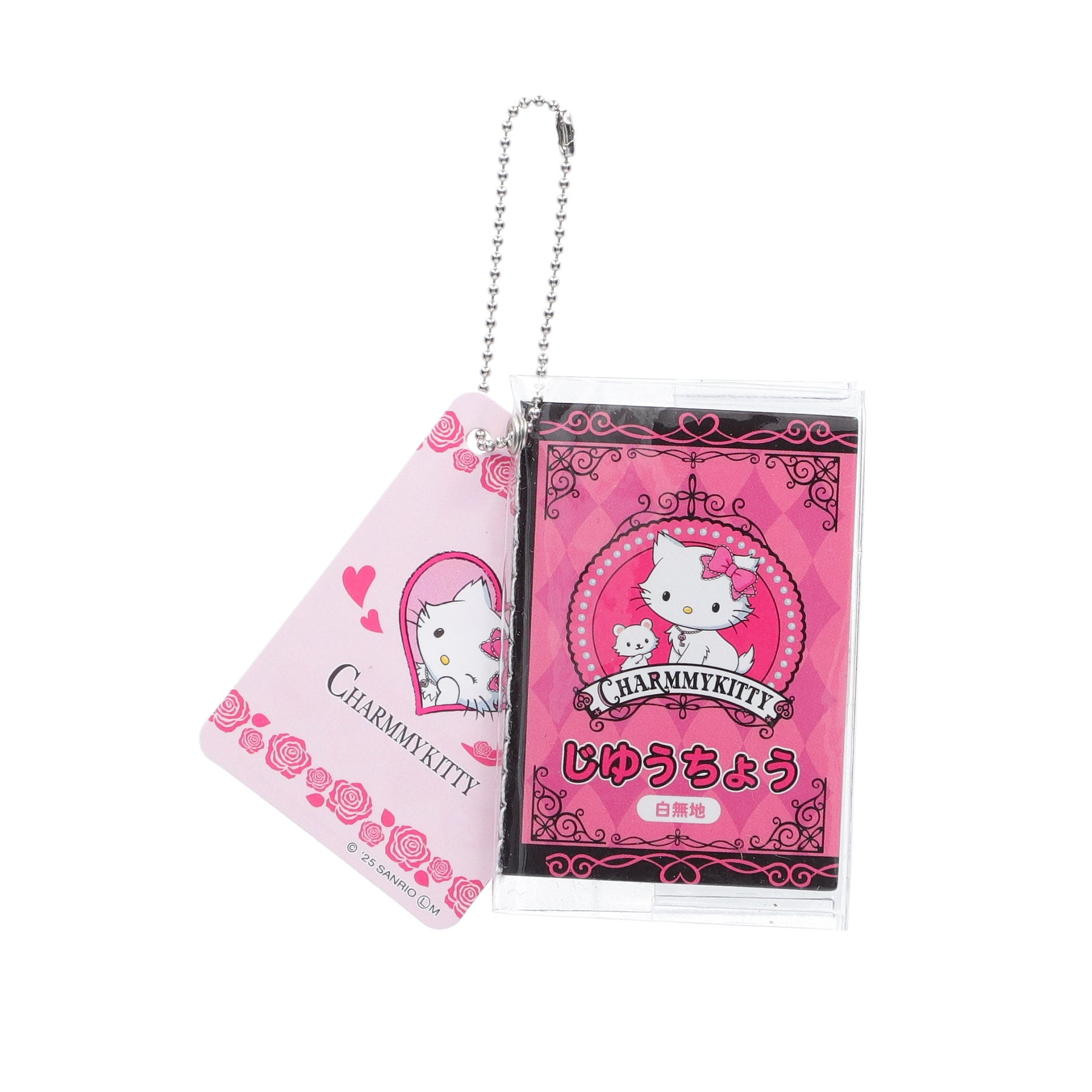 表紙をめくると白無地ノートが16ページあり、実際に文字が書ける仕様で、ミニサイズのメモ帳として活用できます。また、ボールチェーン付きで、お手持ちのポーチやバッグなどに付けてキーホルダーとしての使用もおすすめです。