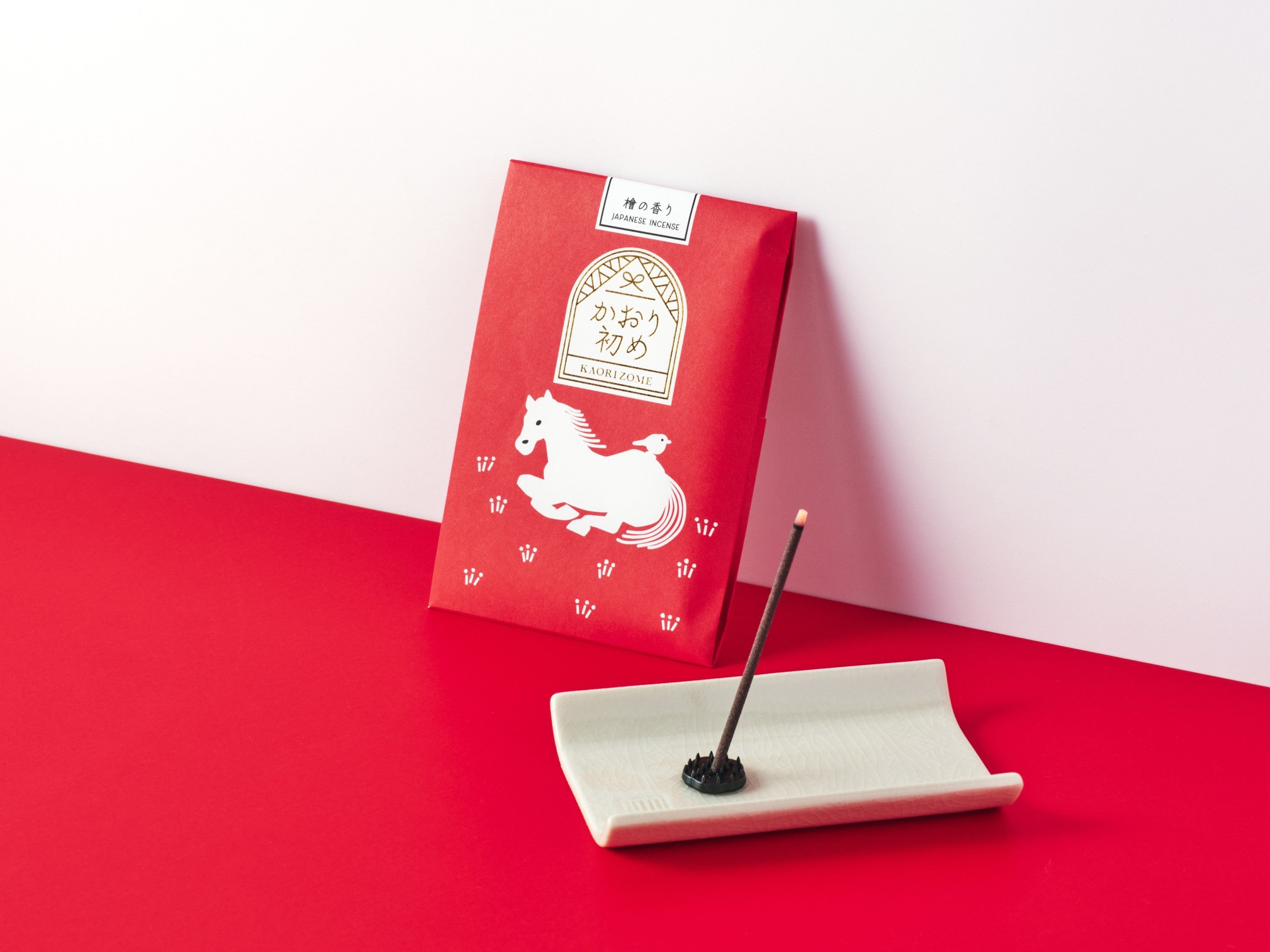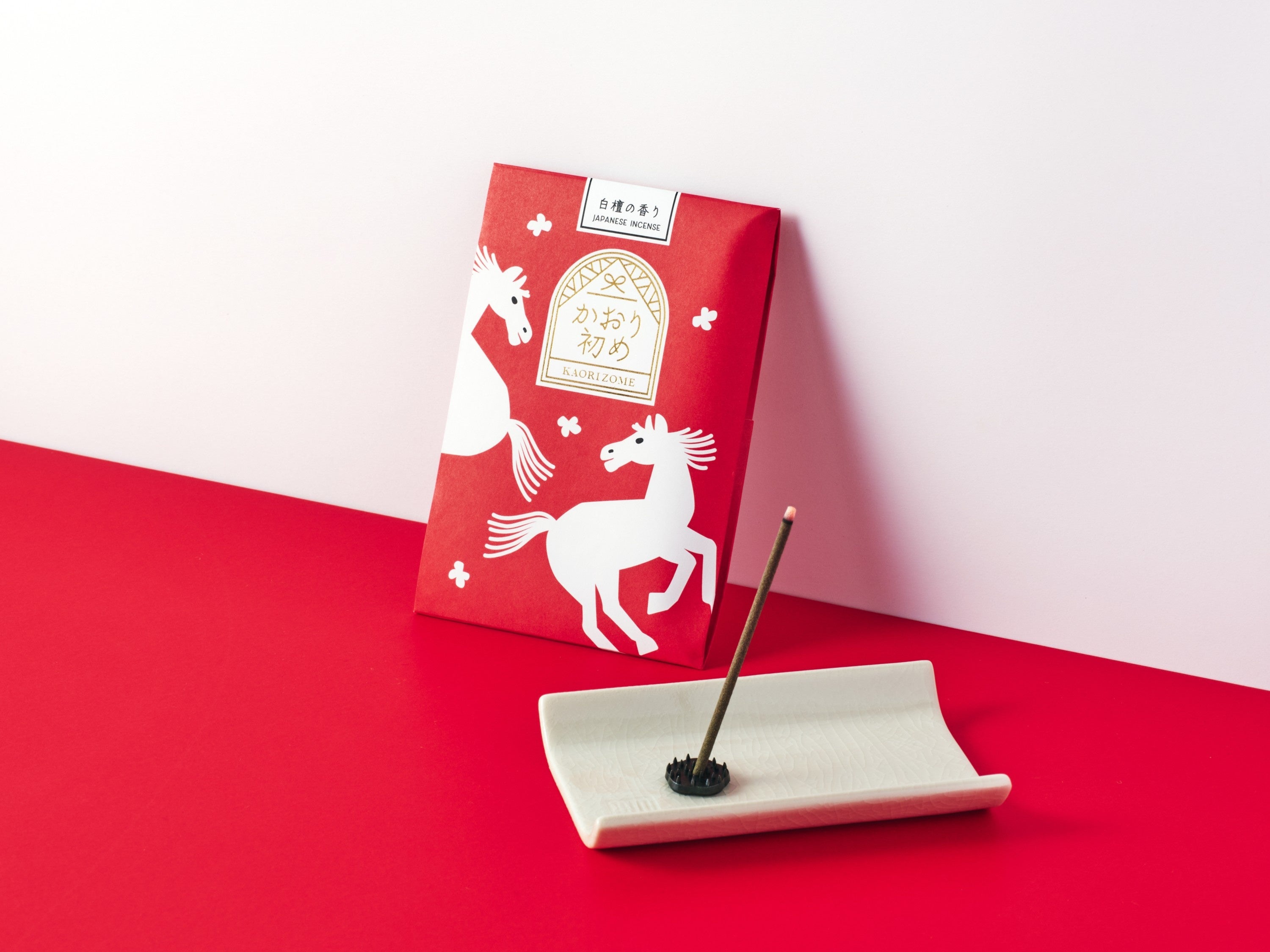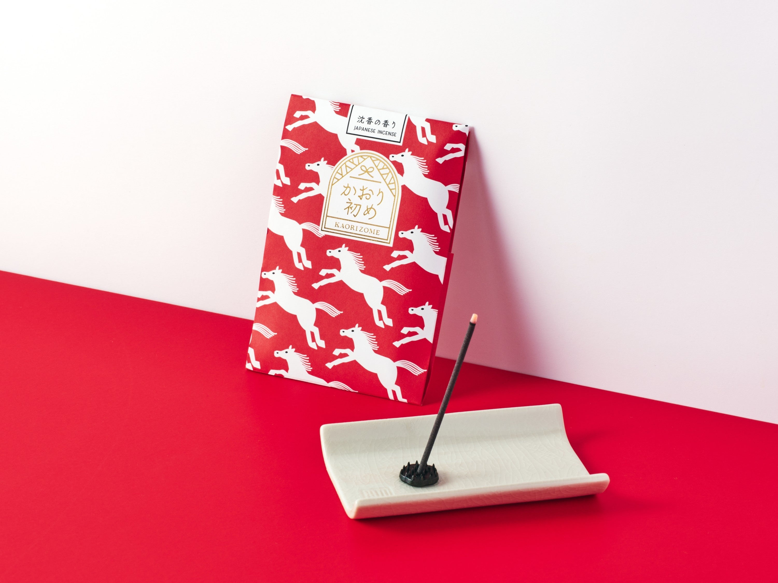 2026年の干支「午」をモチーフにした特別な香皿と、新年にふさわしい香り「沈香」のお香6本のセットです。