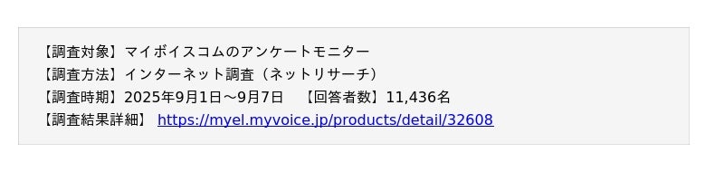 調査結果を掲載・引用いただく場合は、必ず「マイボイスコム調べ」もしくは「マイボイスコム(株)調べ」と表記をお願いいたします。