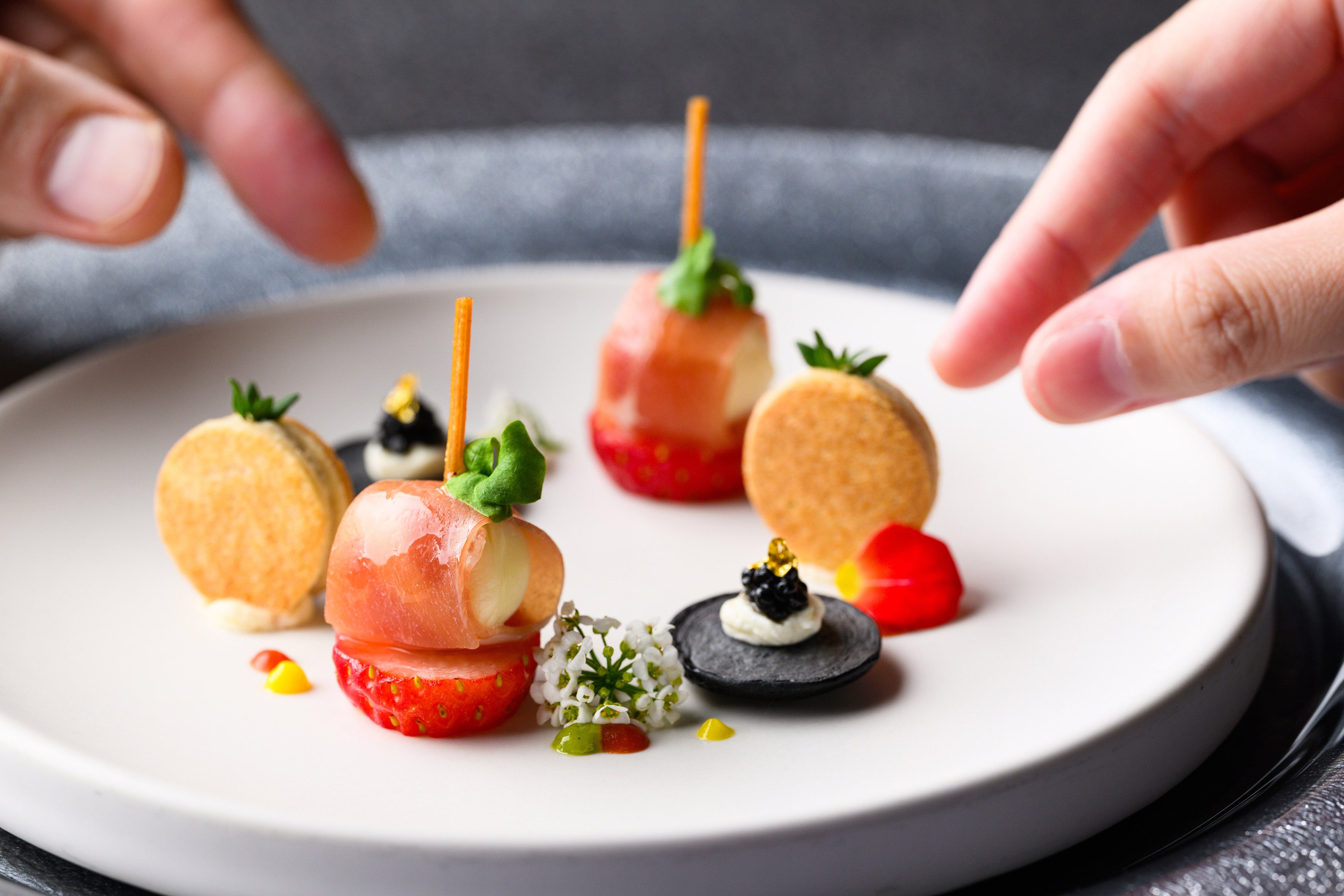 三種のオーナメントで紡ぐ、ミニリースのアミューズブーシュから始まるシェフ渾身のクリスマス限定ディナーです。白いツリーを思わせるカリフラワームース、チーズで舞い落ちる雪を表現したトリュフ風味のアランチーニ、香ばしく焼き上げた真鯛のパイ包み、そして芳醇な香りに包まれるしっとり仕上げた国産牛のロティ。ラストは、苺とキルシュがとけ合うスノードームパルフェ。煌めく冬の夜を彩る、アニヴェルセルならではのクリスマスディナーで心に残る特別なひとときをお楽しみください。