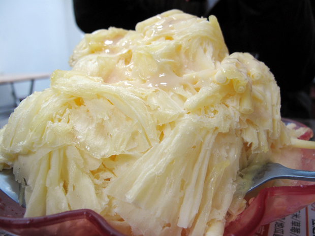 屋台の食べ物はどれも美味しそうで、さんざん食べたはずなのに、あれもこれもと歩きまわる私。そこでせっかくだからと、仙草という植物を煎じたお汁粉のような甘い温かスイーツ“焼仙草”(夏は冷たいゼリー状のものも人気)とマンゴーかき氷をシェア。日本ではあまり見かけないけど、優しい味でお気に入りにランクイン!