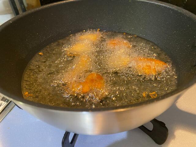 続いて、揚げものに挑戦。油をたっぷり入れても安心の深さです。
