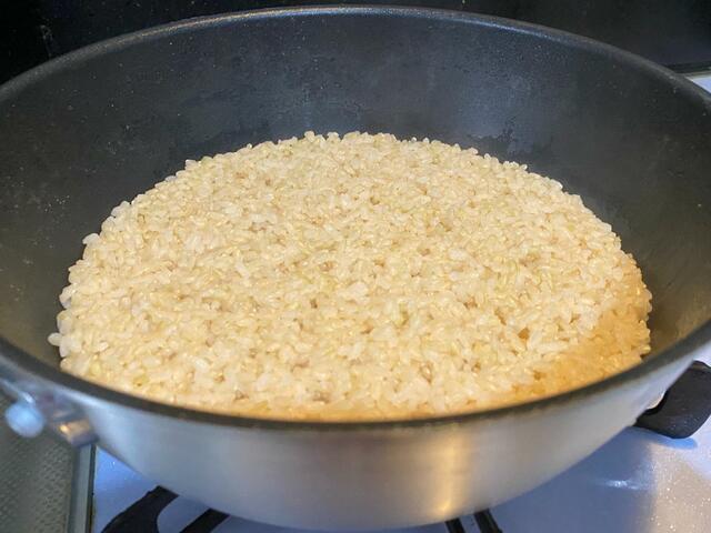 ラストは玄米を炊いてみることに。フライパンでもお米がしっかり炊けます!