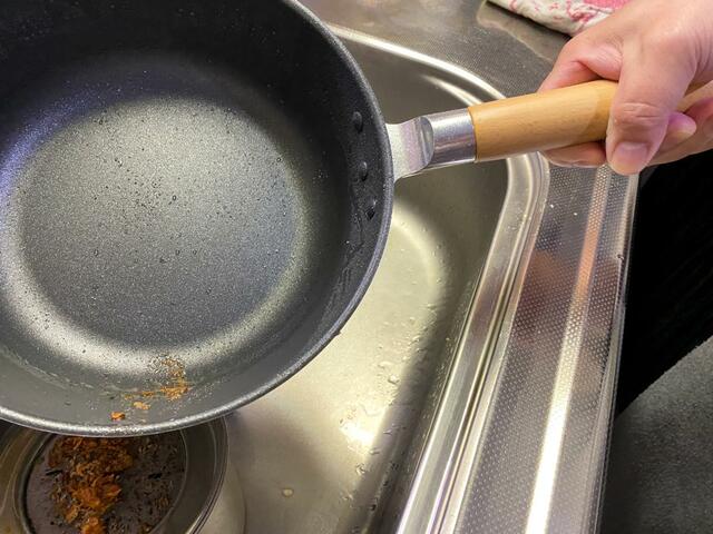 深さのおかげで炒めるときに食材をこぼしにくく、安心感があります。