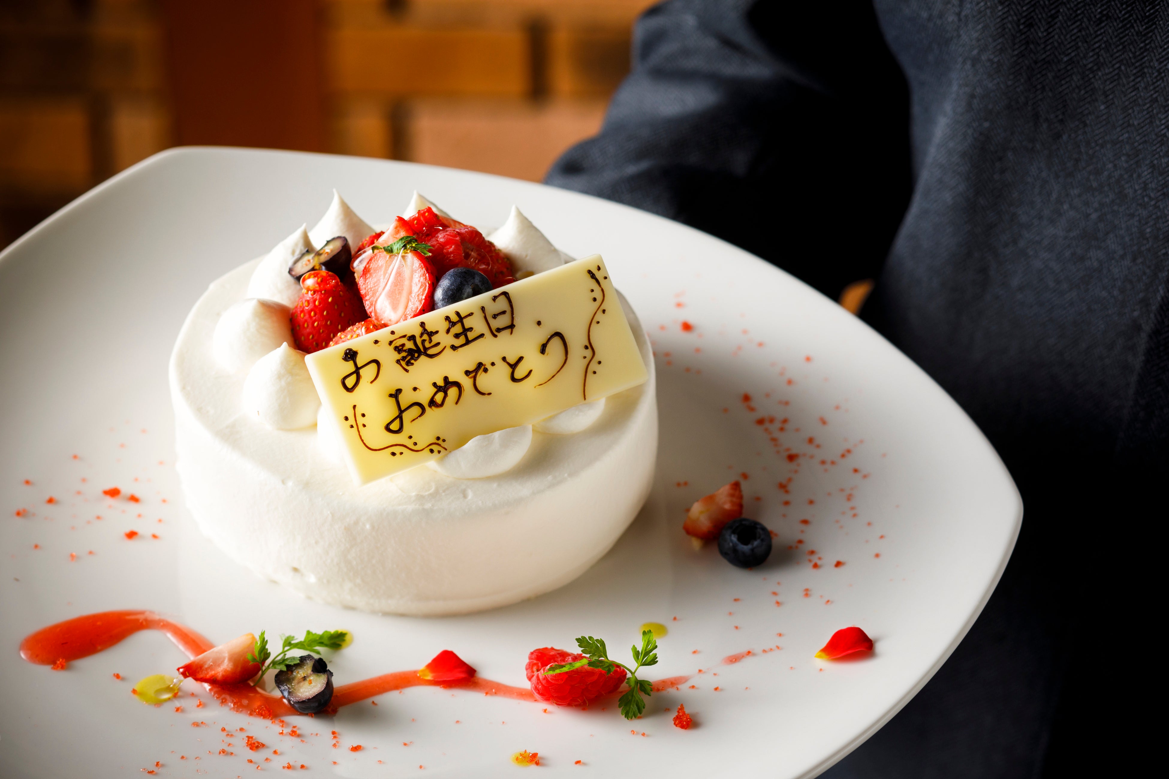 ●ホールケーキのチョコレートプレートにメッセージが記載できます。