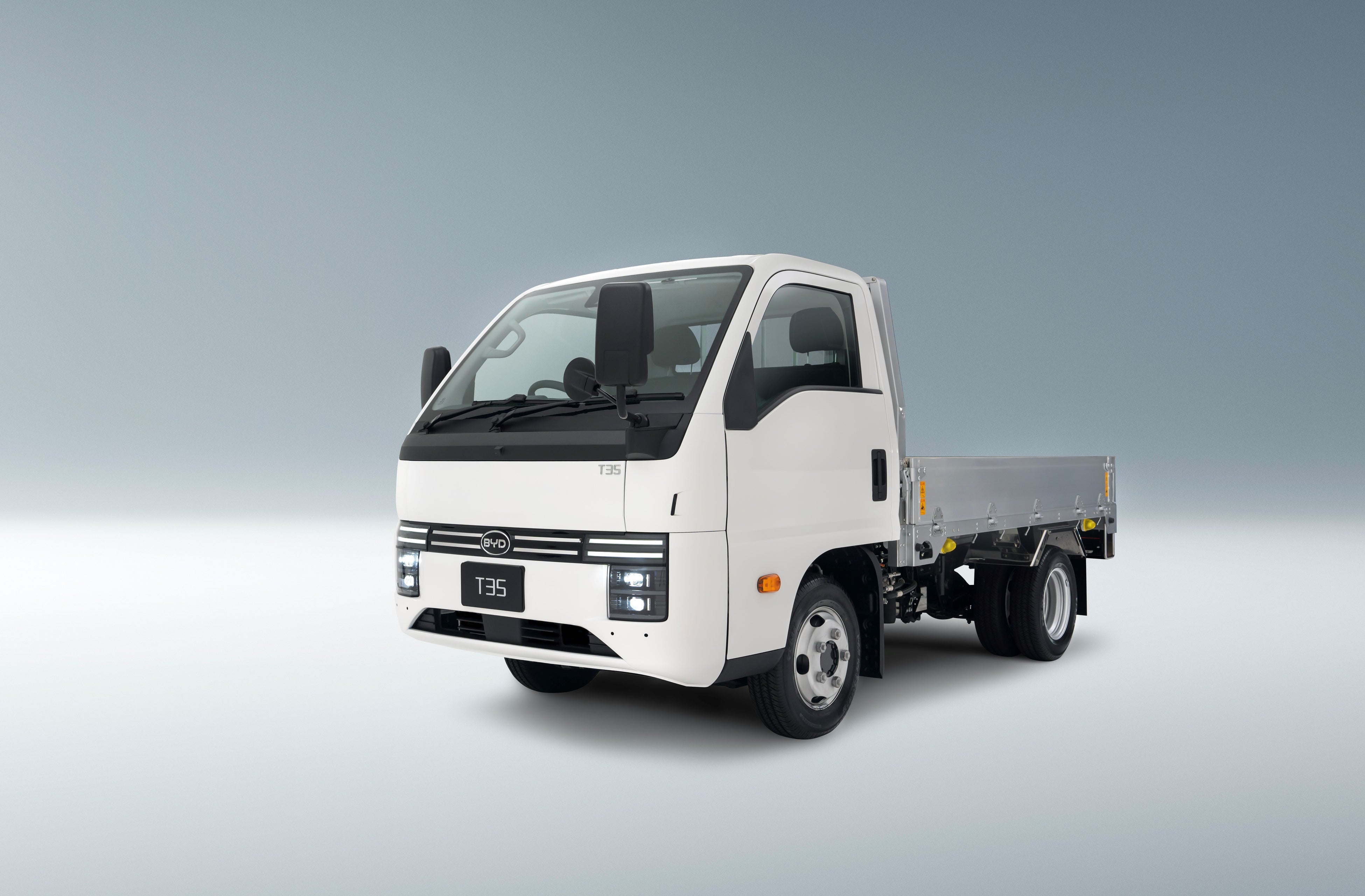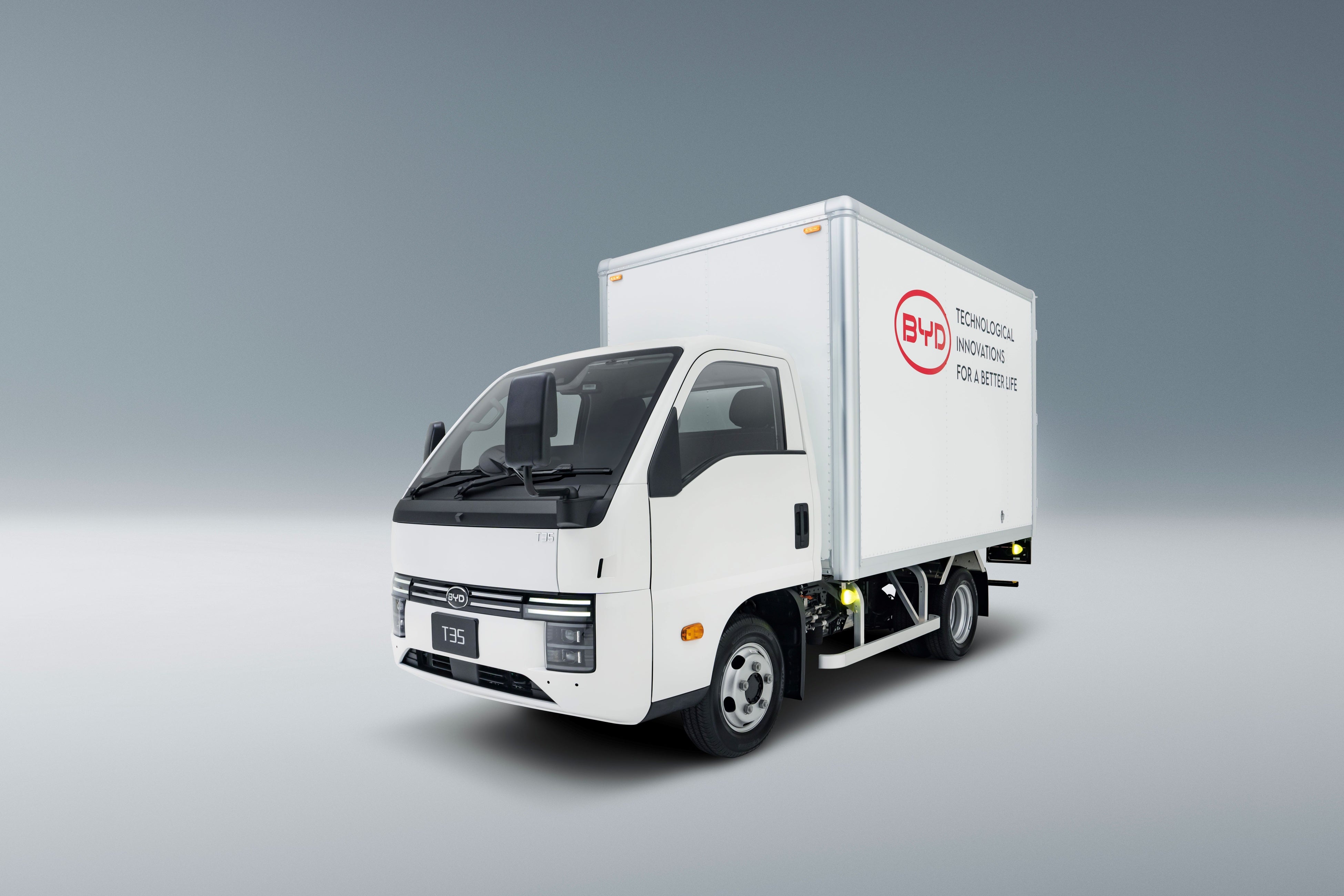 2026年発売予定のEVトラック「T35(ティー サンゴー)」を世界初公開。日本の法規・寸法に最適化した専用設計で、普通免許で運転可能。BYD独自のブレードバッテリーを搭載し、安定した航続距離と高い実用性を備えています。