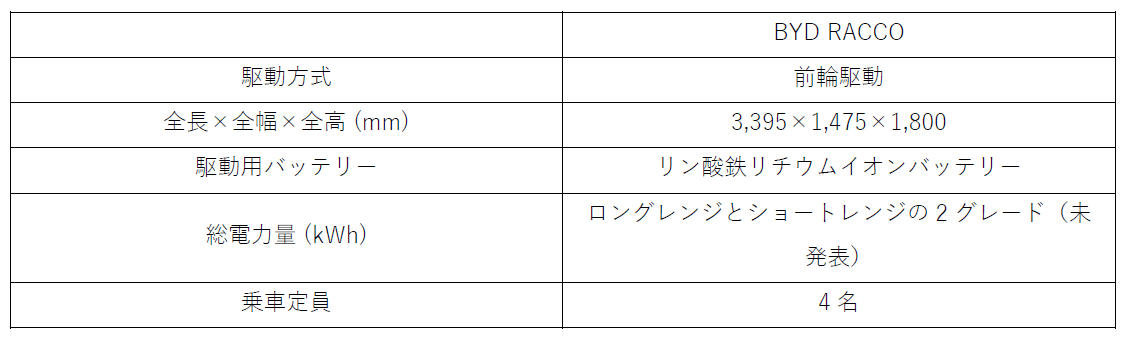 ⚫ BYD RACCO(ワールドプレミア:参考出品)