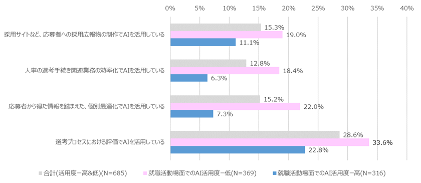 - 学生のAI活用度(高・低)によって、企業が採用場面でAIを活用することに抱く印象が変わる(図表11)