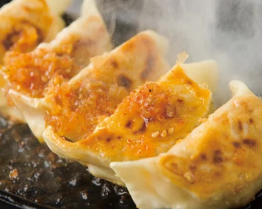 熱々の鉄板で提供するジューシーな「肉汁!鉄板餃子! 4個 ¥462(税込)」