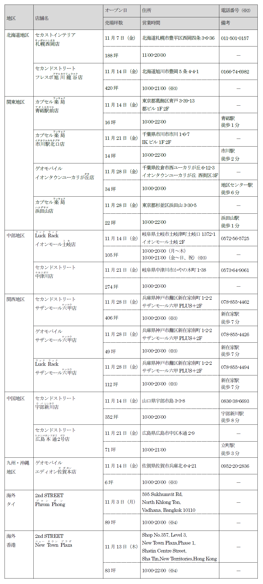 株式会社ゲオホールディングス(本社:愛知県名古屋市中区、代表取締役社長執行役員:遠藤結蔵)は、2025年11月1日から2025年11月30日(※1)までの新規出店情報をお知らせします。