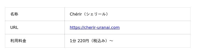 - 提供URL:https://cherir-uranai.com