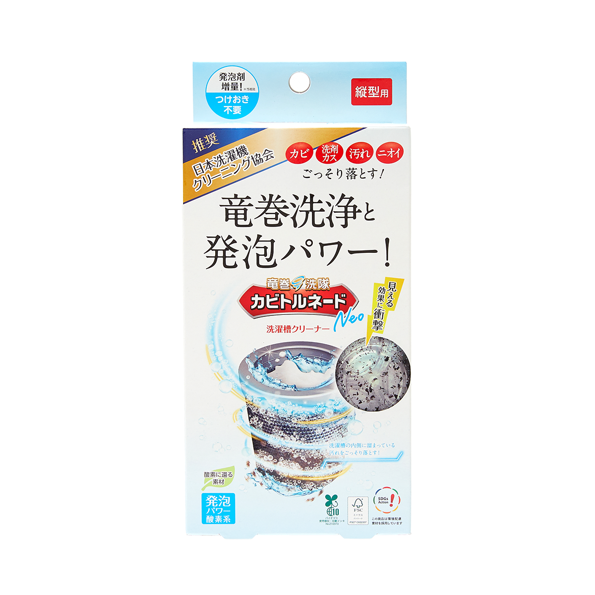 ※1 Instagram、TikTok、X、YouTubeで「#ヘドロトルネード」で検索した際の動画の再生回数。2025年10月末現在。 ※2 2025年9月末現在 ※3 一部取り扱いのない店舗もございます。 ※4 環境によって効果は異なります。すべての菌や汚れに効果があるわけではありません。 ※5 一般社団法人抗菌防カビ清掃技術研究所 ※6 洗濯槽を回すことによる ※7 洗濯機の構造上、基本縦型のみ ※8 カビ汚れがある部分を落とすこと。汚れ具合により効果は異なります。 ※9 コゲつきや汚れの度合いにより効果は異なります。 ※10 すべてのニオイ、菌に効果があるわけではありません。効果の保証をするものではありません。 ※11 フィトンチッド液による抗菌試験において2019年7月23日有限会社T.Mエンタープライズ調べ