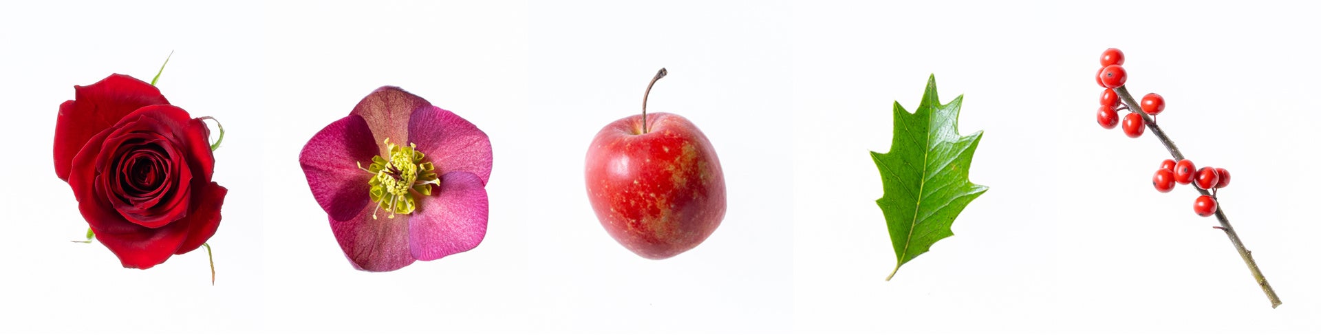 バラ クリスマスローズ 姫リンゴ 西洋ヒイラギ ウメモドキ